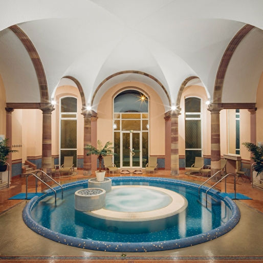 Quel magnifique cadre : on se retrouve à barboter dans un superbe bâtiment en grès rose (notre marque de fabrique dans les Vosges-du-Sud) ou sous une magnifique verrière, le tout au ♥ d'un somptueux parc verdoyant. Le saviez-vous ? Ce bâtiment est classé monument historique ! Est-ce qu'on rêver mieux pour se détendre ?