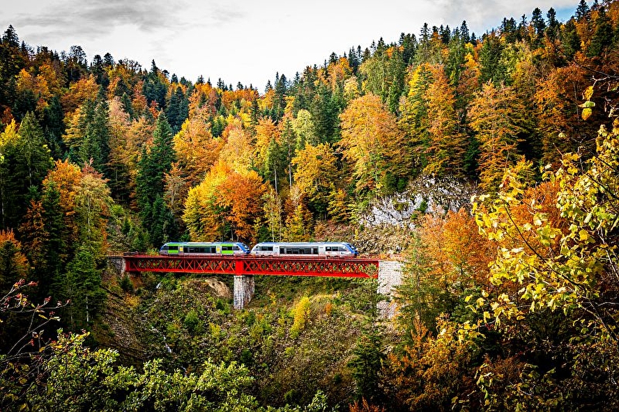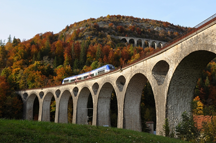 De Dole à Saint-Claude dans le Jura, empruntez cette ligne mythique et offrez-vous 120 km de voyage féérique entre ciel et terre.