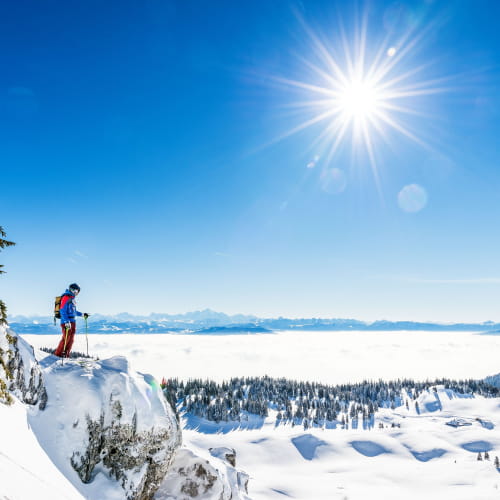 Dans le Haut-Jura, la station des Rousses dévoile un domaine aussi large que varié avec plus de 39 remontées mécaniques et la possibilité de skier en France et sur le versant Suisse.