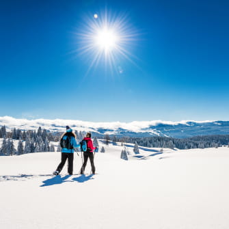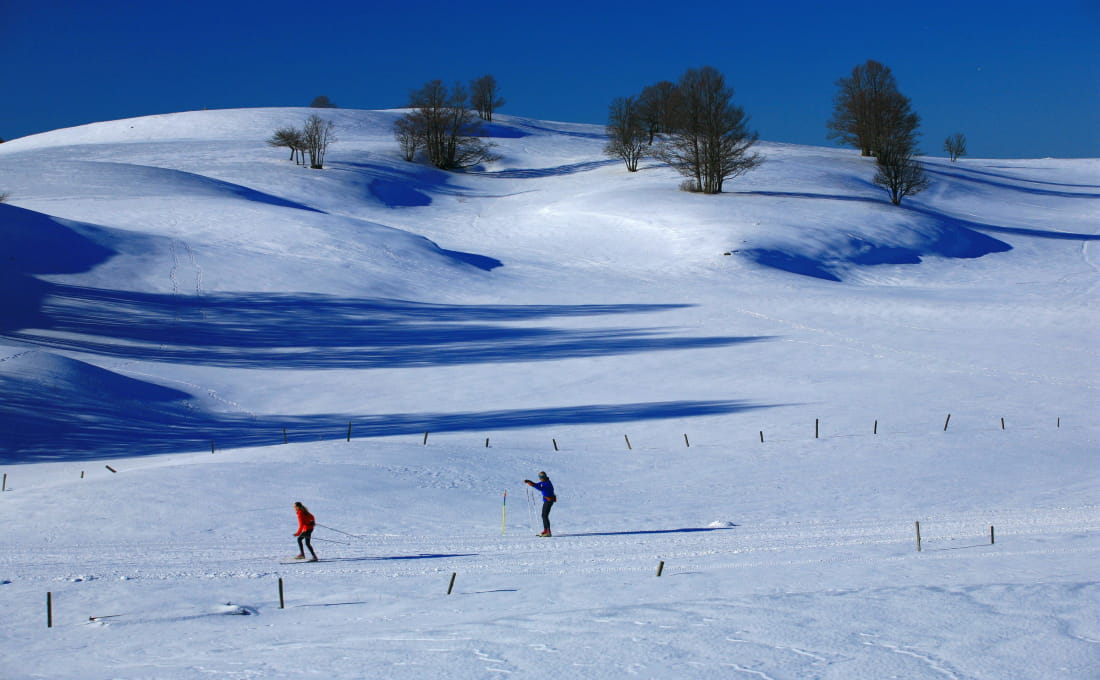 Ski de fond classique ou skating, les pistes damées vous emmènent au coeur de la nature entre combes, prairies, forêts d’épicéas et crêtes. Un vrai paysage de carte postale !