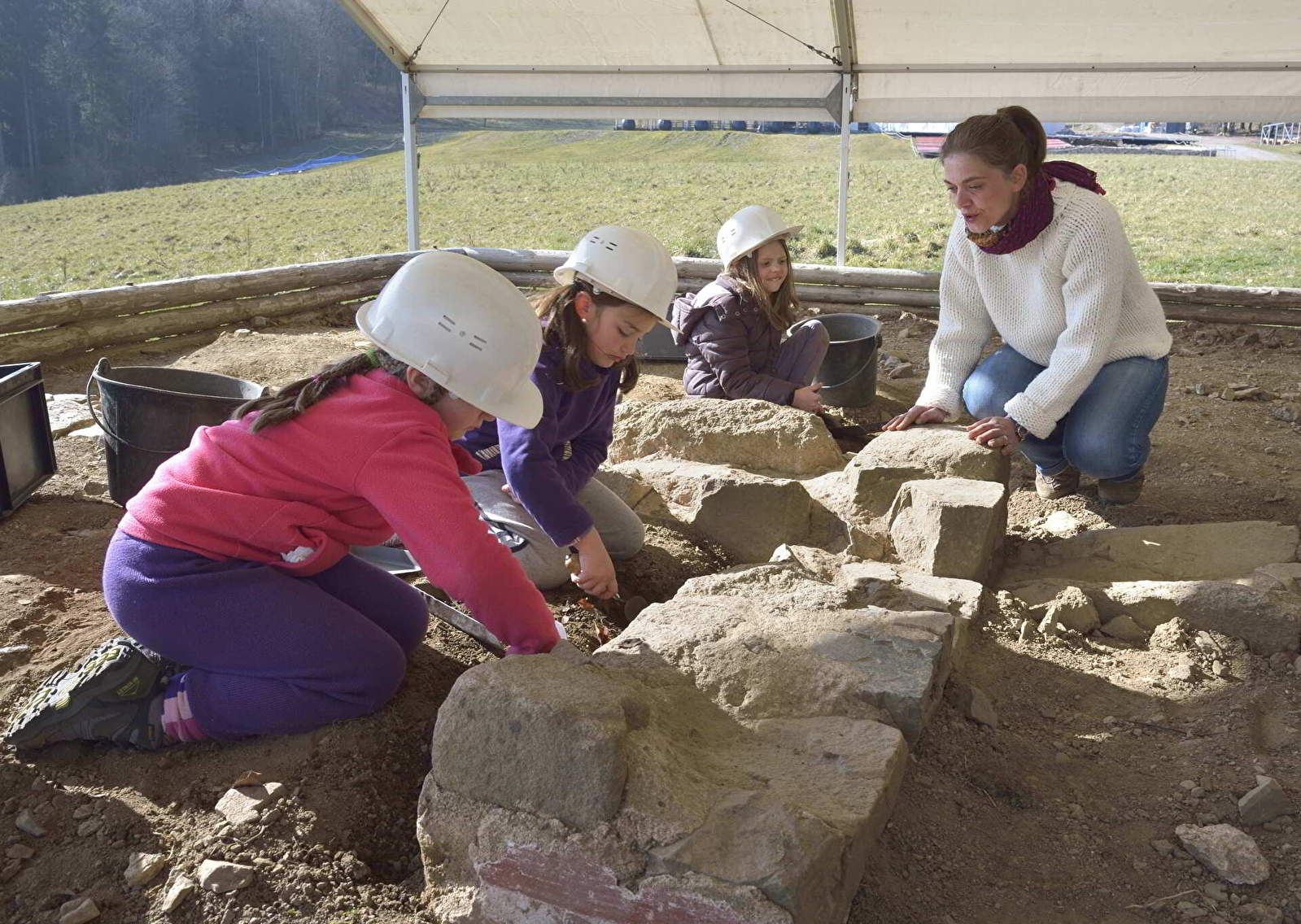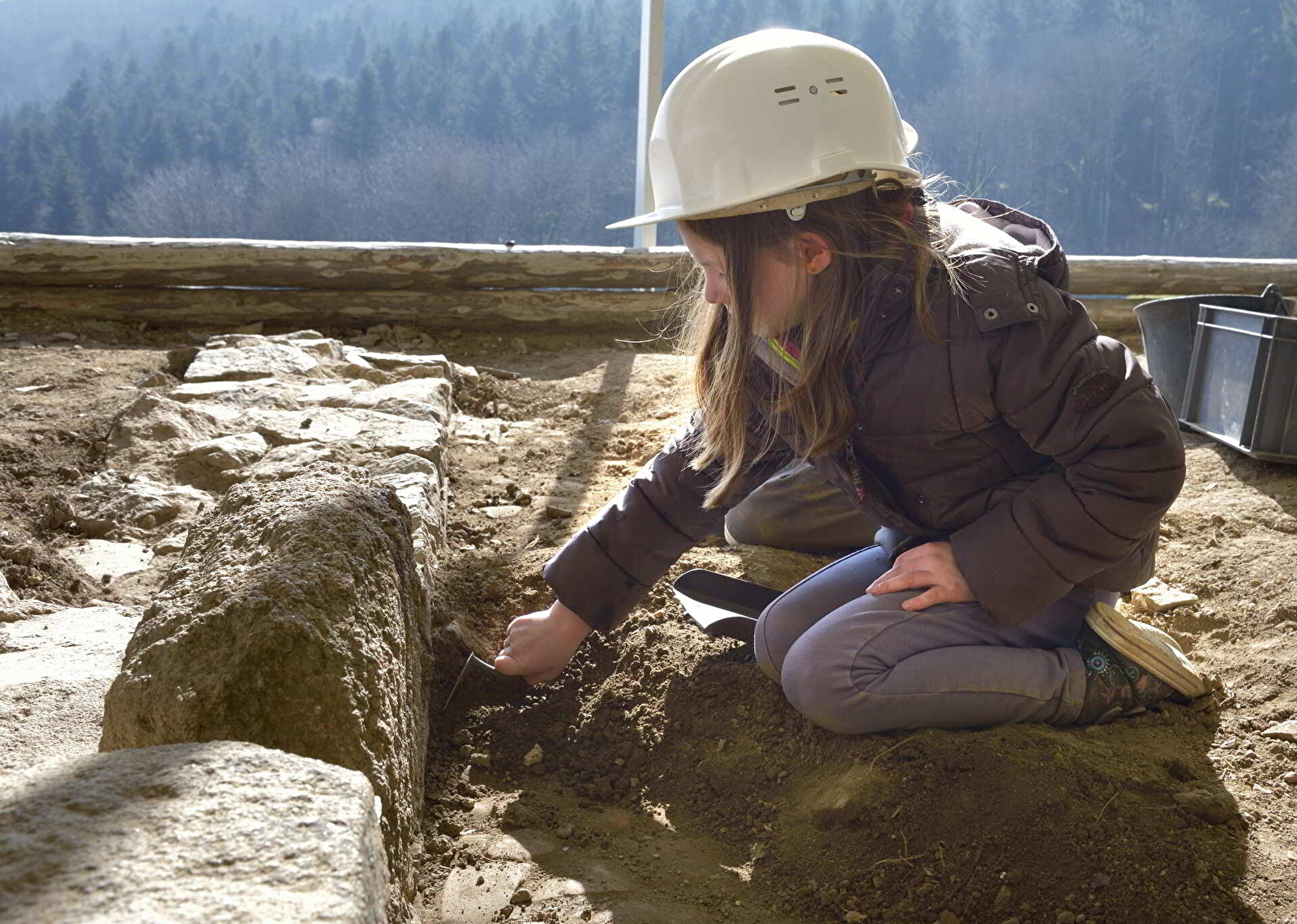 Truelle à la main, initie-toi aux gestes de la fouille et à la démarche scientifique, tel un vrai archéologue, sur un chantier de fouille reconstitué.