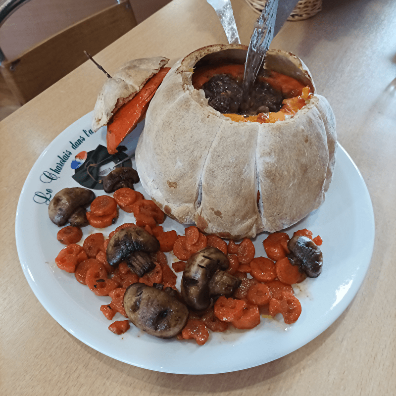 Pendant les vacances, les enfants se transforment en petits chefs pour concocter un bourguignon d’automne, présenté dans un pain en forme de citrouille puis préparent un dessert ensorcelant : l’Œil de Vampire, à base de panna cotta, kiwi et coulis de fruits rouges. Un moment ludique, créatif et délicieusement monstrueux !