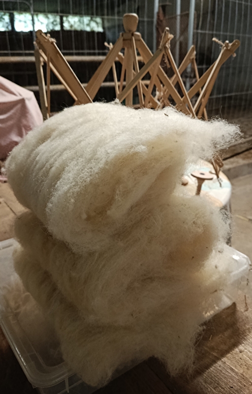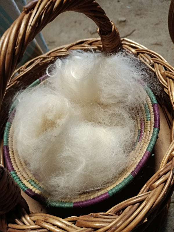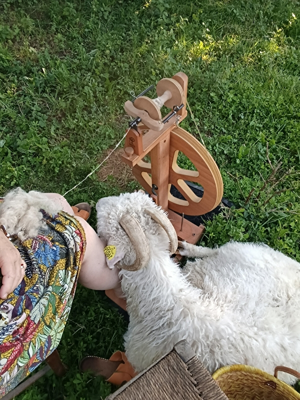 * 3 h le samedi matin pour un atelier d'initiation "filage au rouet" ; vous y découvrirez toute la transformation de la fibre, le mohair, du tri au cardage et enfin le filage. La personne repart avec son travail réalisé ou bien
