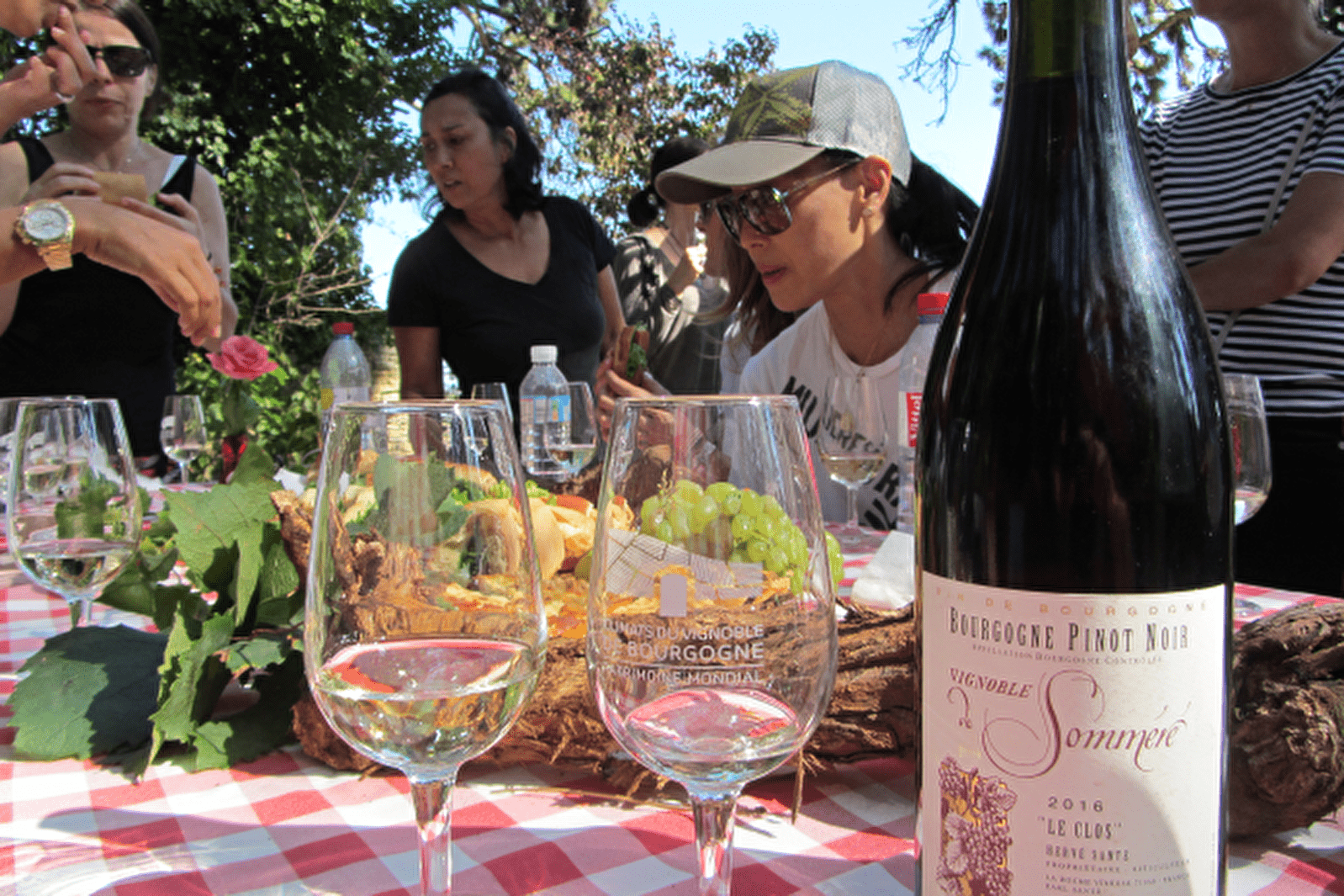 Dégustation surprise de crus," climats" en lieu bucolique, visite de villages, panoramas, histoire du vignoble... Expérience directe en milieu naturel.