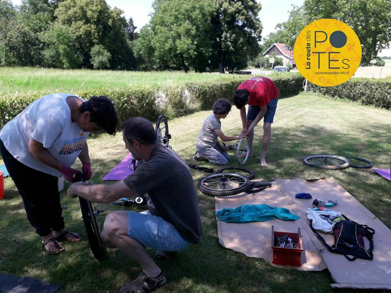Nous proposons des ateliers de réparations de vélo, de fabrication de produits zéro déchets ou de furoshiki, de l’initiation à la vannerie, de réparation de vêtements …
