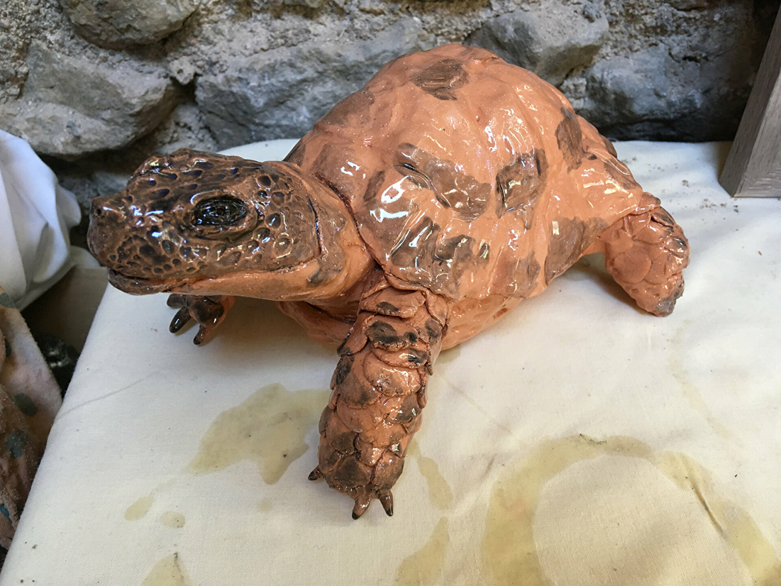 Sculpture terre argile, modelage. Aux Ateliers du Prieuré, Christine Guillon fabrique des sculptures en terre argile émaillée. Ce cours d'initiation (adultes ou enfants) de modelage sculpture argile a lieu de 14h à 18h, avec une collation vers 16h et une pause piscine à 17h en été pour terminer la journée. Sur inscription préalable.