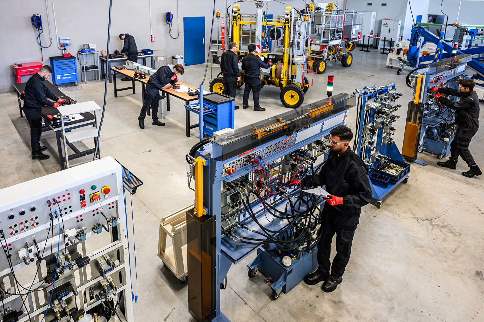 Campus Mecateam dispose de deux ateliers sur un total de 700 m² équipés de tout le matériel nécessaire pour des formations de qualité (bancs hydrauliques, platines électriques…) ainsi que d’engins ferroviaires lourds installés sur des voies-école qui permettent de dispenser des formations à l’échelle 1.
