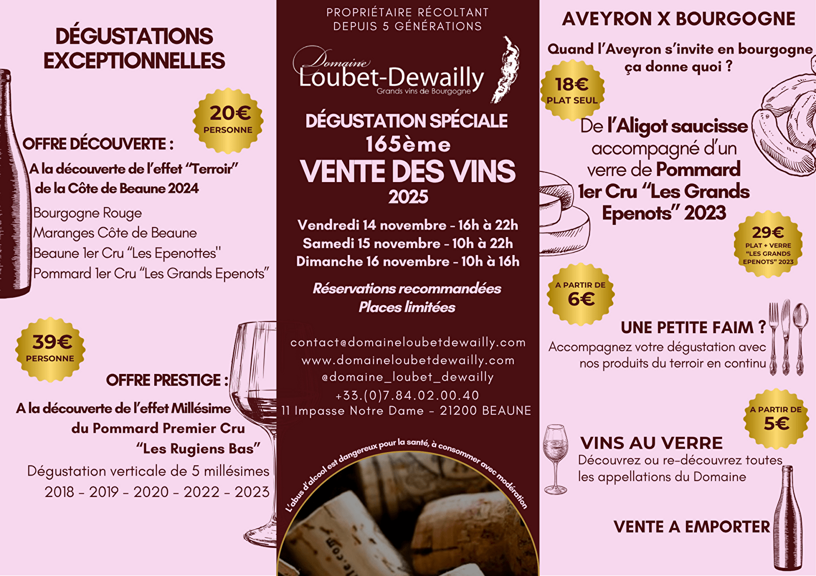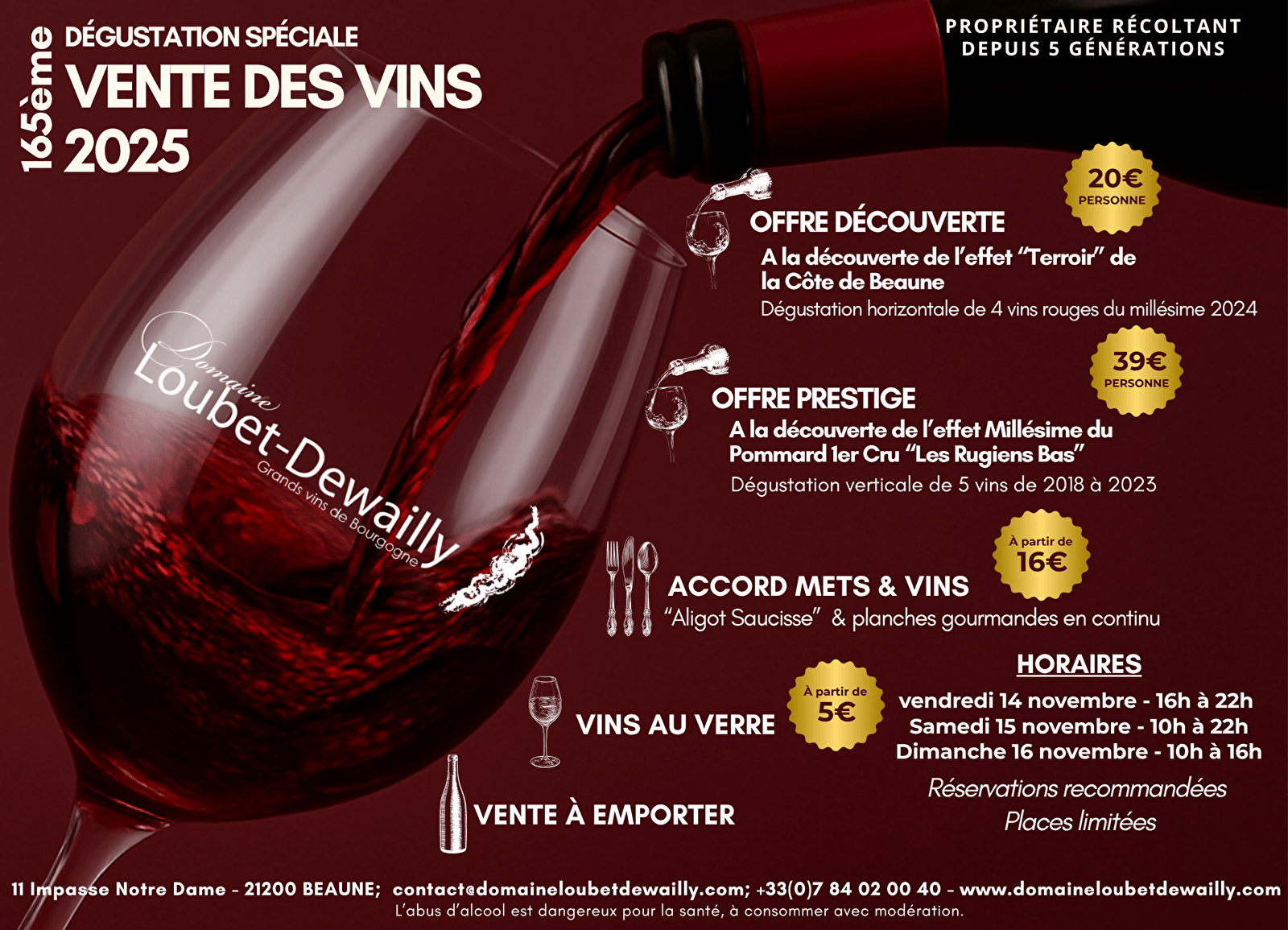 Domaine Loubet-Dewailly - Vente des Vins 2025 : Dégustation Horizontale "Découverte" : Pinot noir de la Côte de Beaune 2024