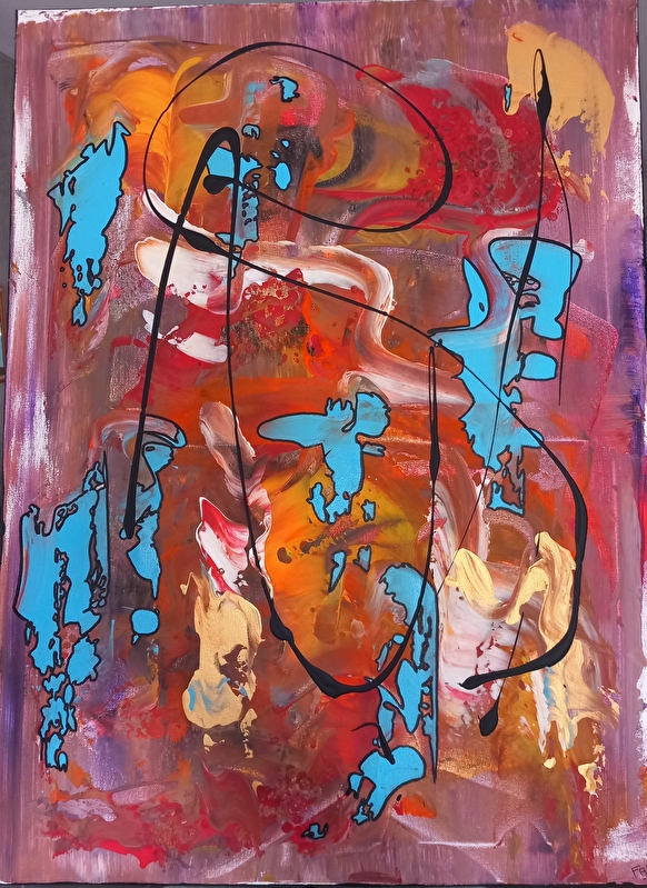 Pour Fabien, peindre est une nécessité, une respiration : ses œuvres traduisent un besoin d’expression et de liberté, où chaque toile devient un espace d’expansion.