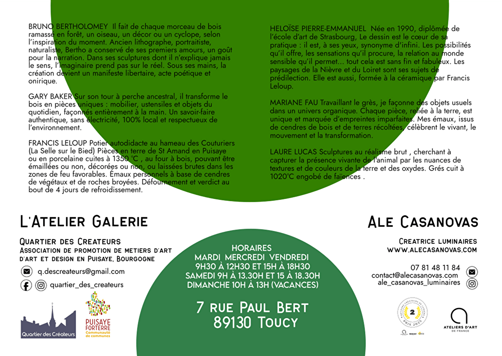 Une galerie qui promeut les arts, métiers d'art et design en région. Il est aussi engagé dans nos métiers, pour que les artistes artisans puissent exposer et rencontrer le public