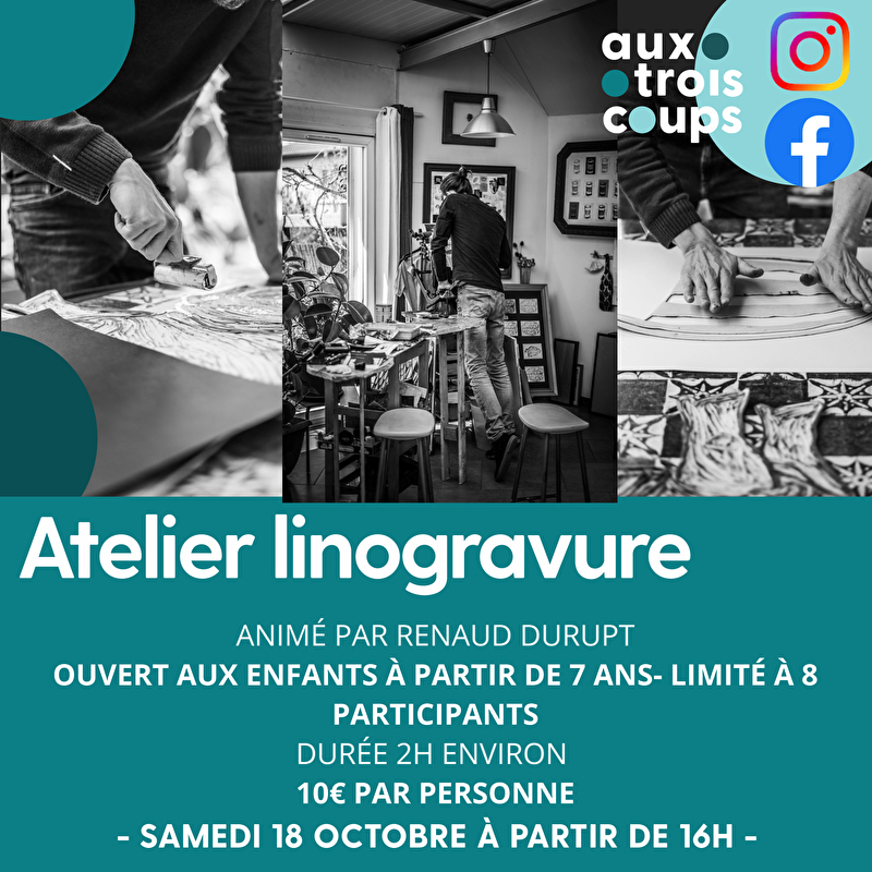 - Tarif de base (Atelier linogravure du 18 octobre) : 10€