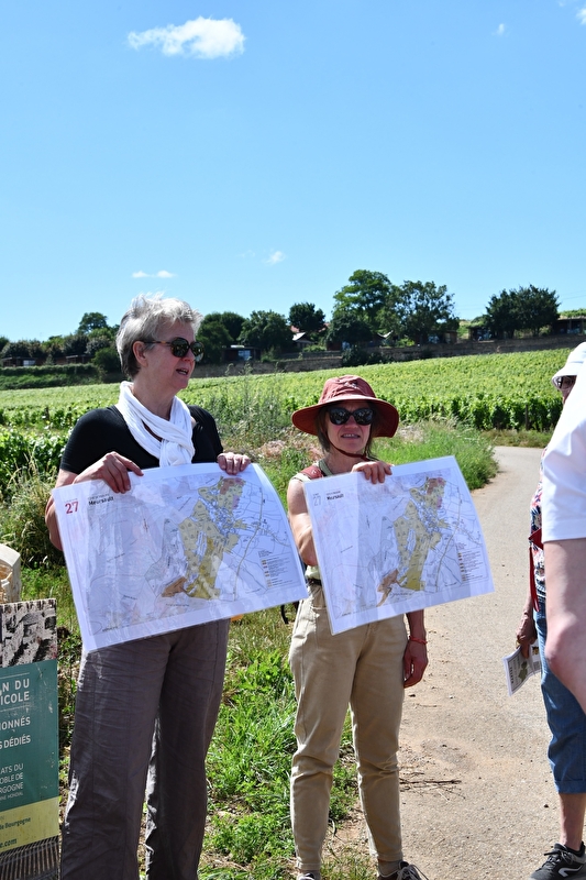 Françoise Vannier, géologue, et Karoline Knoth, historienne, vous proposent un parcours original à Meursault, du village aux vignes. Au fil d'une promenade vous partirez à la recherche d'un cépage mystérieusement disparu du vignoble murisaltien. Vous découvrirez ensemble les clés pour pouvoir lire les partitions du terroir, entre l’homme et le paysage. Ouvrez grands les yeux et les oreilles, elles vous convient à une approche colorée et inattendue, où vous mettrez les mains à la pâte, pour découvrir le vignoble sous un angle inhabituel... Des surprises vous attendent tout au long de la visite