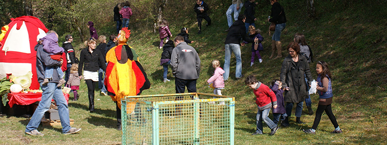 Embarquez à bord du train avec un arrêt à mi-parcours pour partir à la chasse aux œufs. Rencontrez le coq du Parc des Combes et son œuf magique.