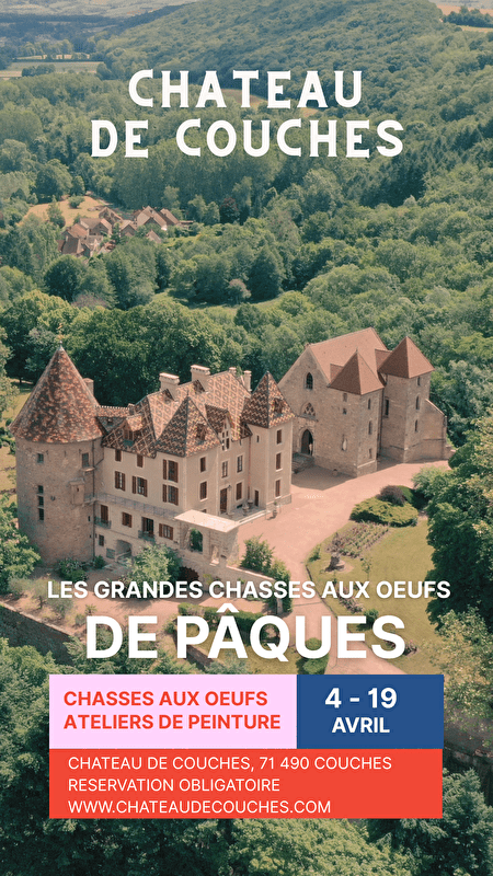 Lors de la "Chasse aux Œufs" du Château de Couches, tous les petits chasseurs sont gagnants. Savamment cachés dans les fourrés de la basse cour ou dans les souterrains en cas d'intempérie, de petits œufs factices permettent aux enfants (quelle que soit la quantité de la récolte) d'obtenir un joli sachet de chocolats de qualité.