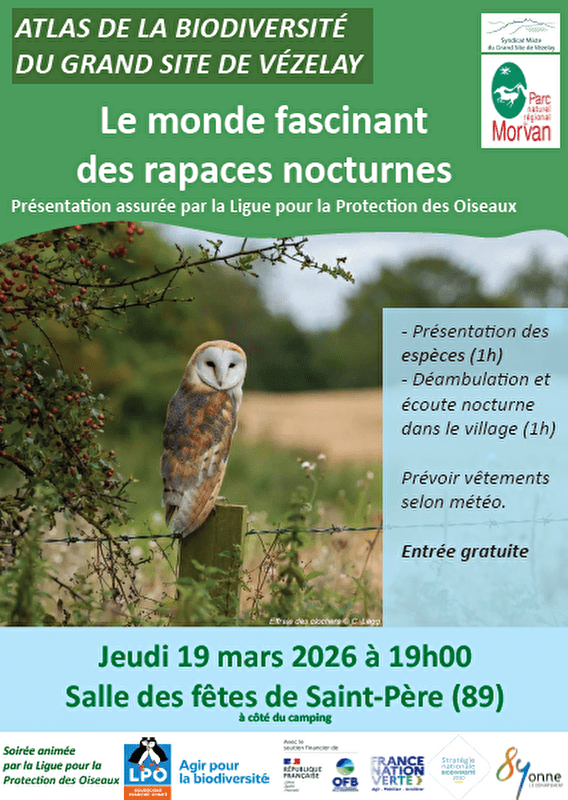 Rendez-vous à la selle des fêtes de Saint-Père à 19h00 pour une présentation des rapaces nocturnes du Vézelien.