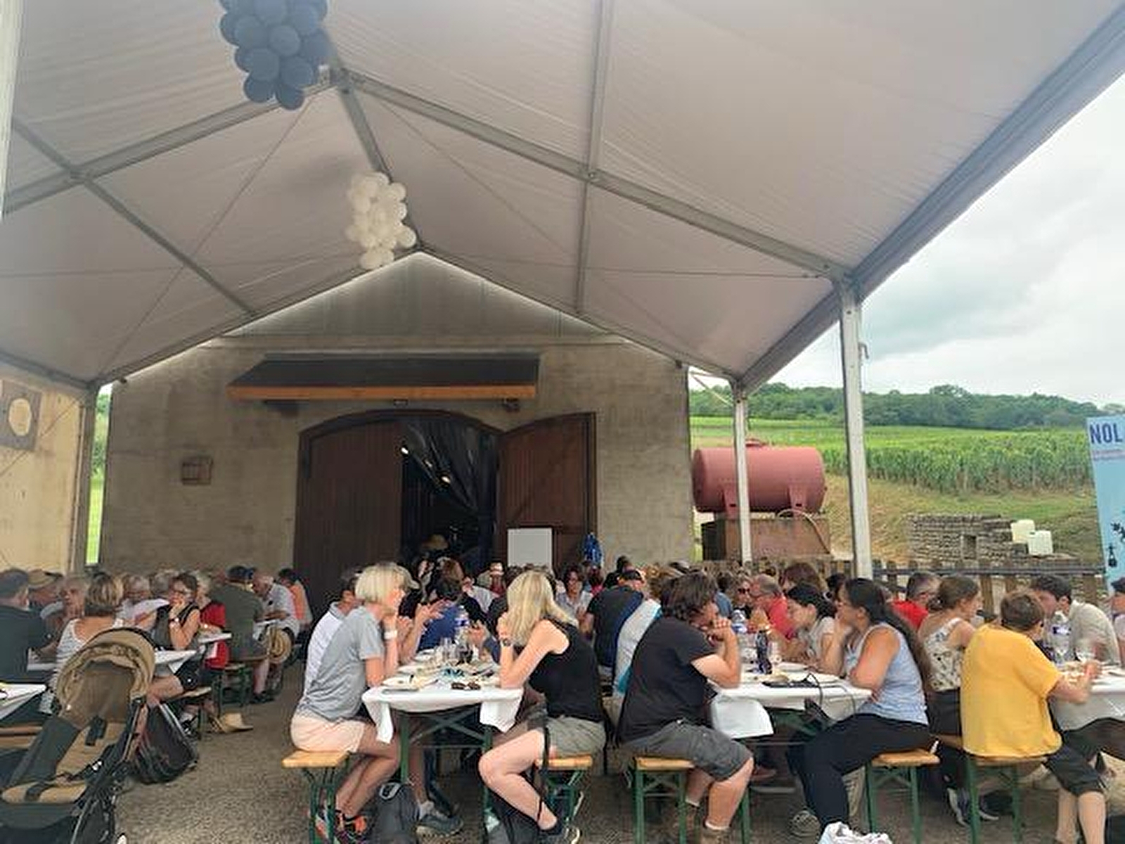 Dans un domaine viticole, un repas froid est servi, un viticulteur et sa famille vous accueillent dans leur cuverie pour partager ce moment convivial.