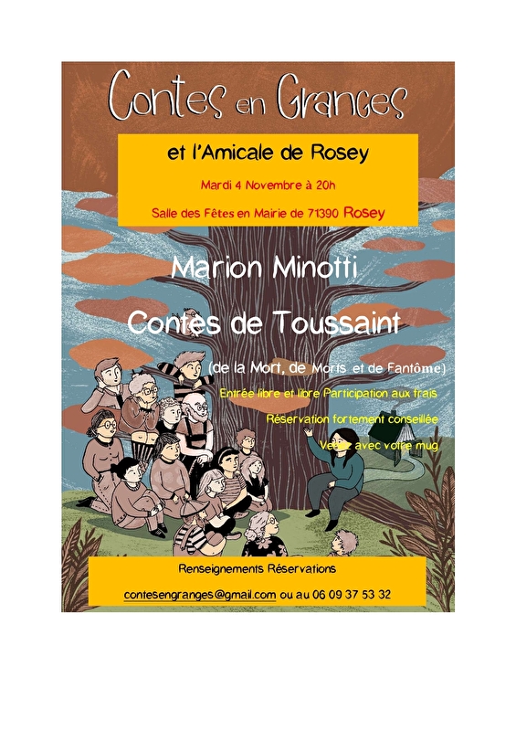 Contes en Granges et l’Amicale de Rosey présentent Marion Minotti qui dit ses Contes de Toussaint (de la Mort, des Morts et des Fantômes).