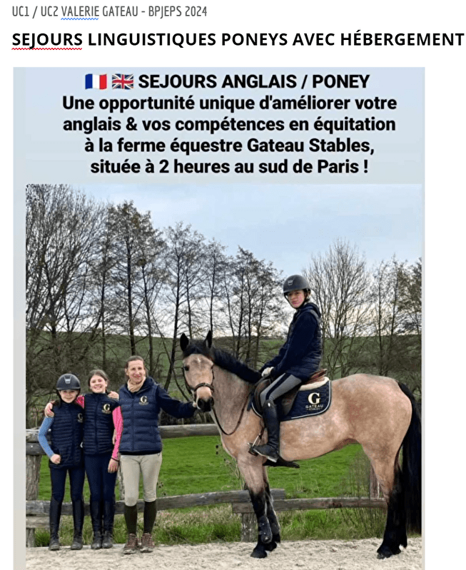Stages d'équitation en Anglais weekend ou à la semaine