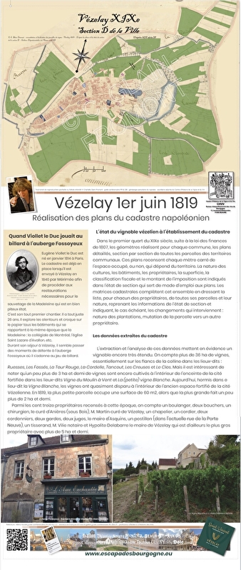 A l'occasion du bicentenaire de la création des plans du cadastre, visite insolite du village de Vézelay à la découverte de ses habitants, des différents métiers et du vignoble de Vézelay en 1821.