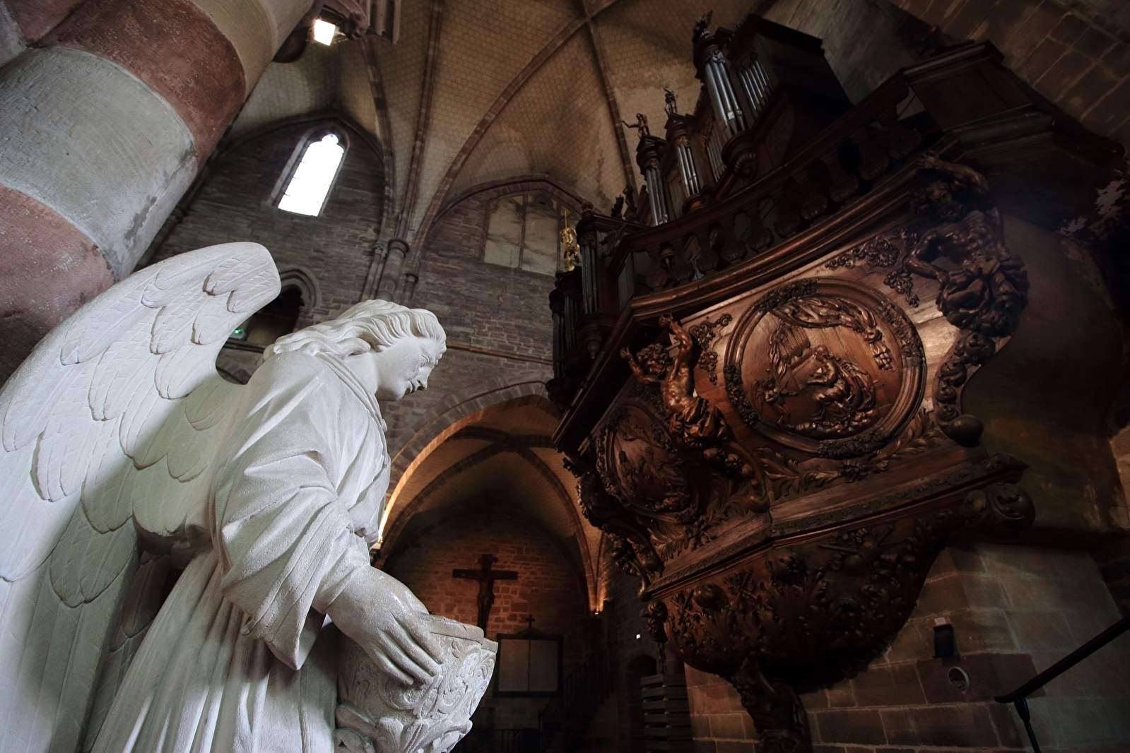Témoin de la longue histoire de l’abbaye fondée par le moine irlandais Colomban, la basilique recèle de nombreux secrets. Détails sculptés de l’orgue baroque, vitraux chamarrés, précieuses reliques : huit siècles de trésors se dévoilent sous les majestueuses voûtes gothiques.