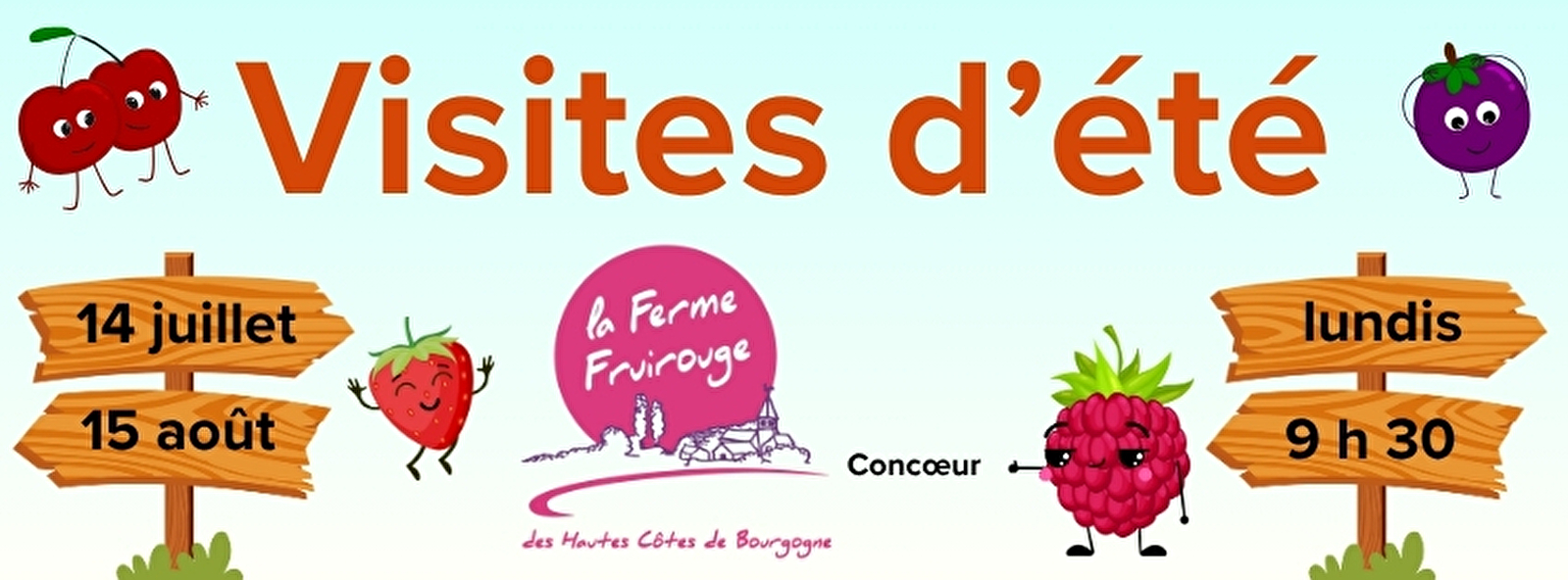 Du 14 juillet au 15 août, retrouvez-nous chaque lundi à 9 h 30 à la ferme Fruirouge à Concœur. Partez explorer nos vergers de petits fruits rouges Bio, puis plongez dans notre ancien atelier de fabrication. Un film illustrera notre lien au vivant avant une dégustation commentée de nos confitures, boissons et condiments. Une immersion gourmande et authentique au cœur des Hautes-Côtes de Bourgogne !
