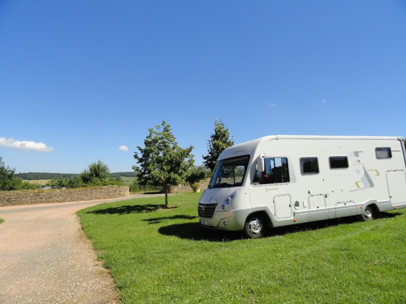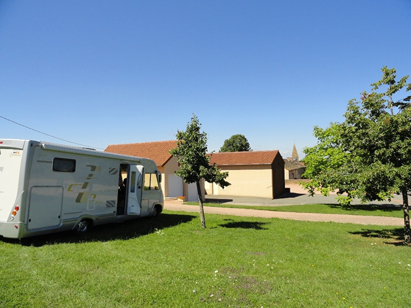 Parking communal enherbé et un peu arboré, quelques endroits plats. Prévoir des cales.