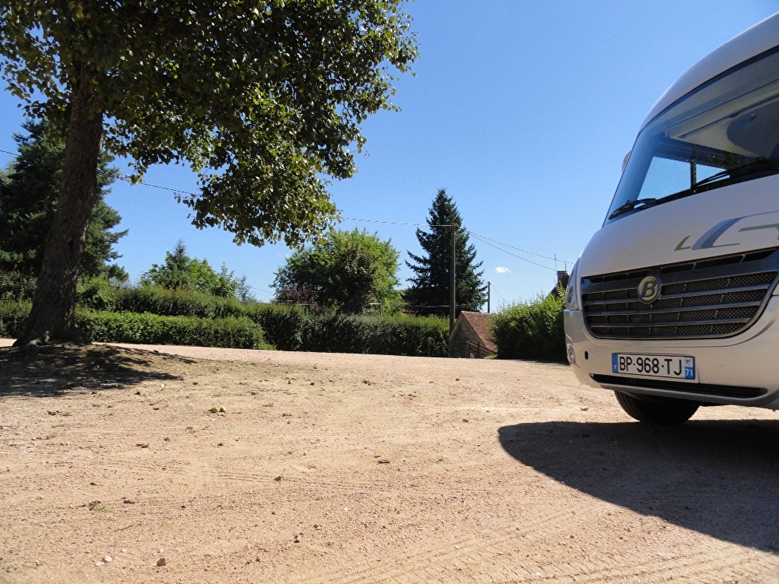 Parking de la salle communale - peu d'ombre - plat.