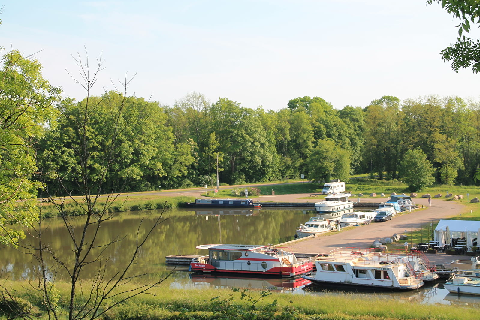 Au port de Chitry-Chaumot, le long du Canal du Nivernais, profitez d'un grand espace vert pour vous installer.