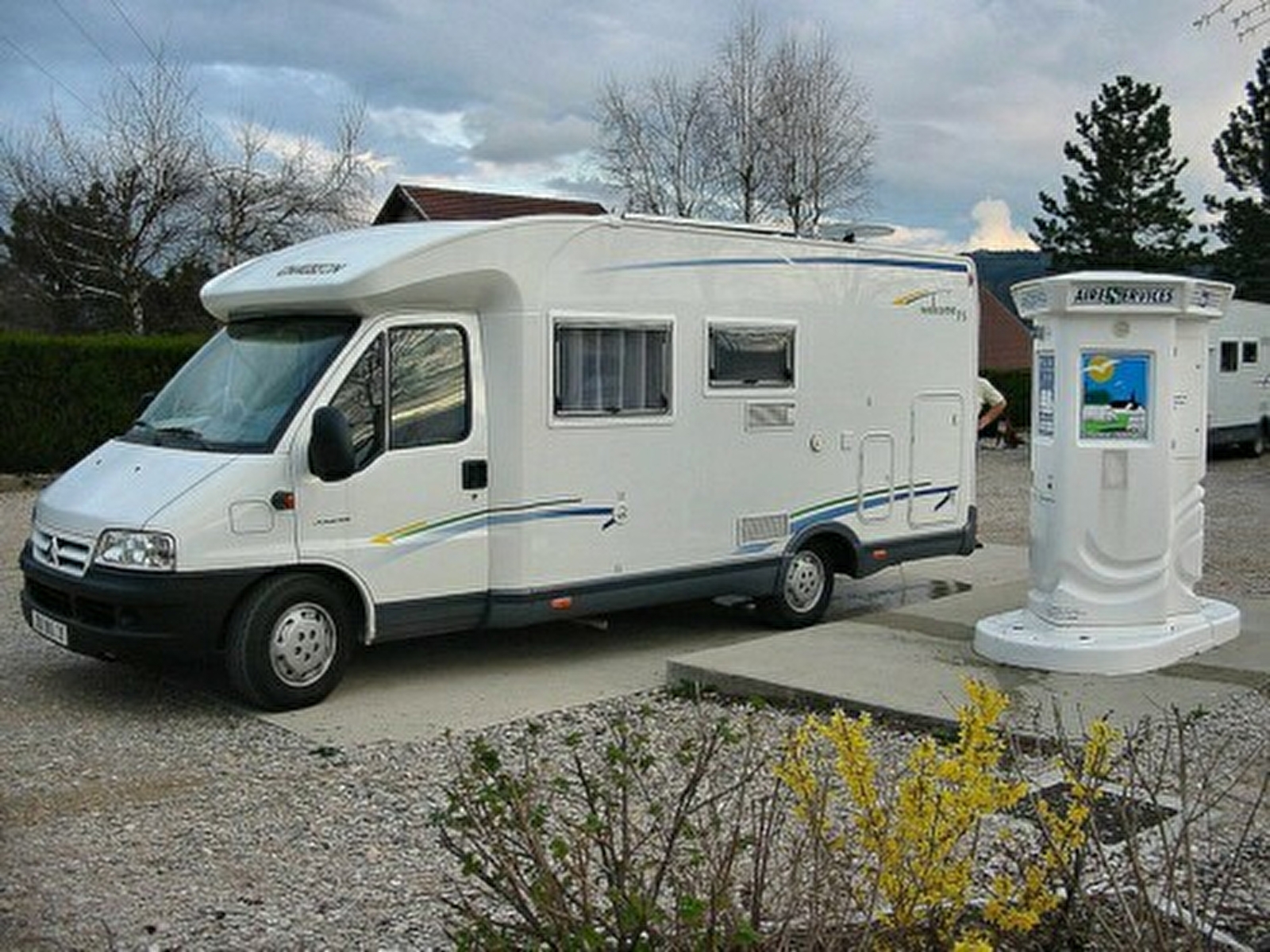 Du 08/05 au 15/09, nuitée à 8€ comprenant l'accès aux services et 5 € le jeton pour les vidanges et le plein d'eau 100 l (sans stationnement). Pas d'électricité.