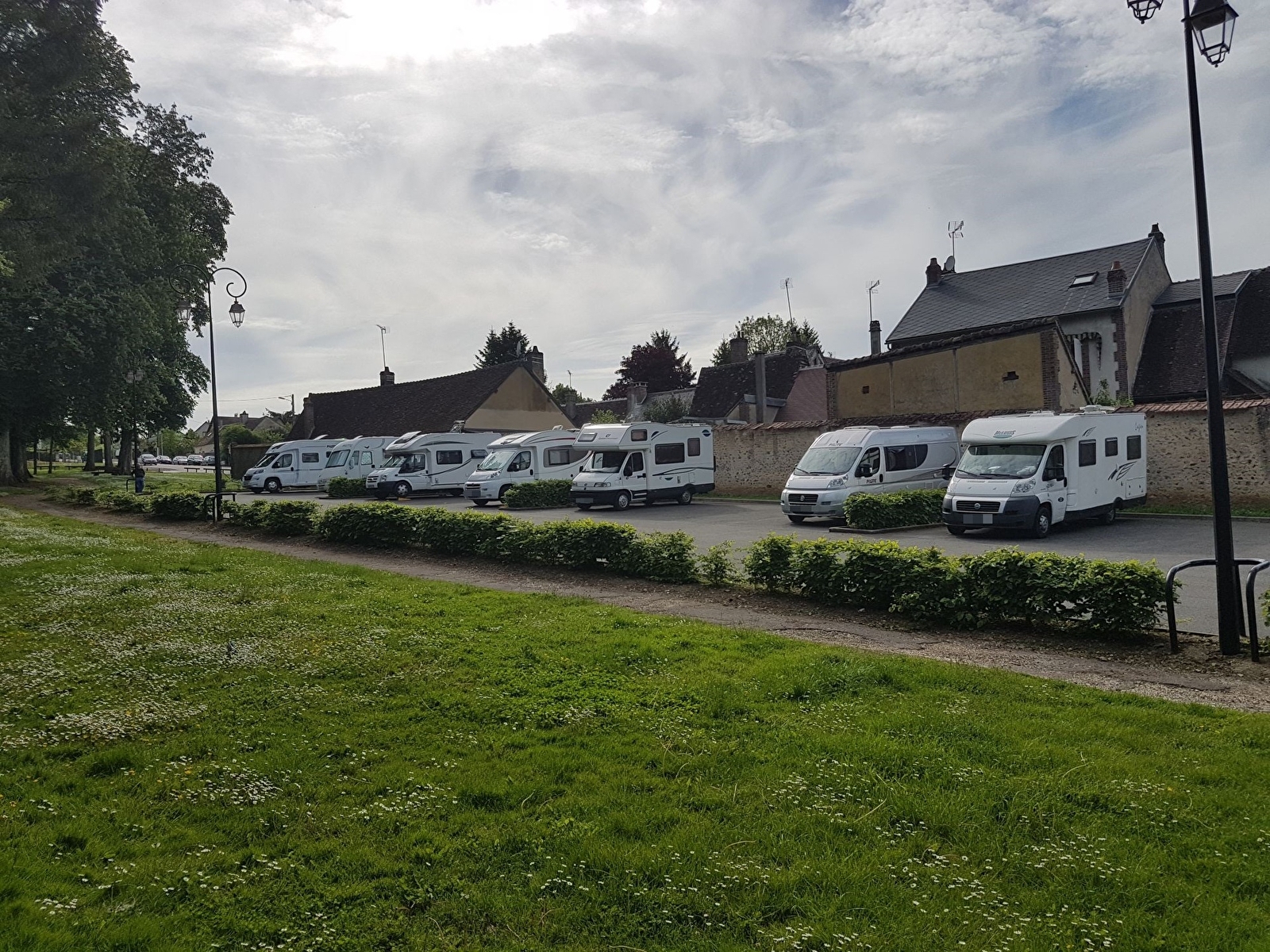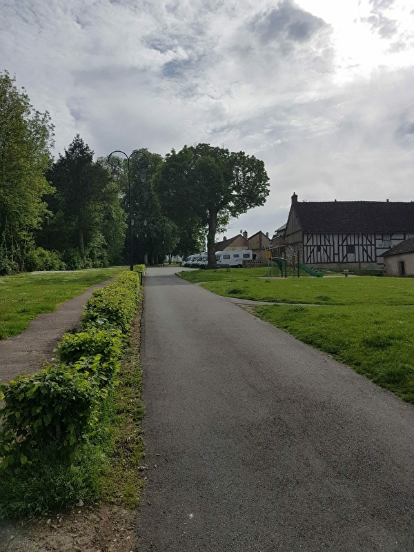 Aire de services pour camping-cars au cœur de Saint-Fargeau, au pied de l'ancienne halle et à proximité immédiate du château.