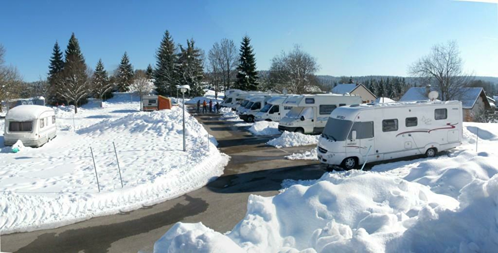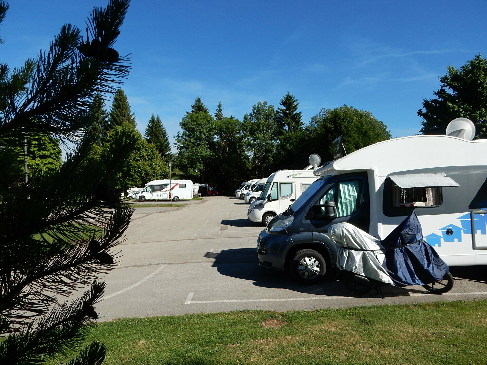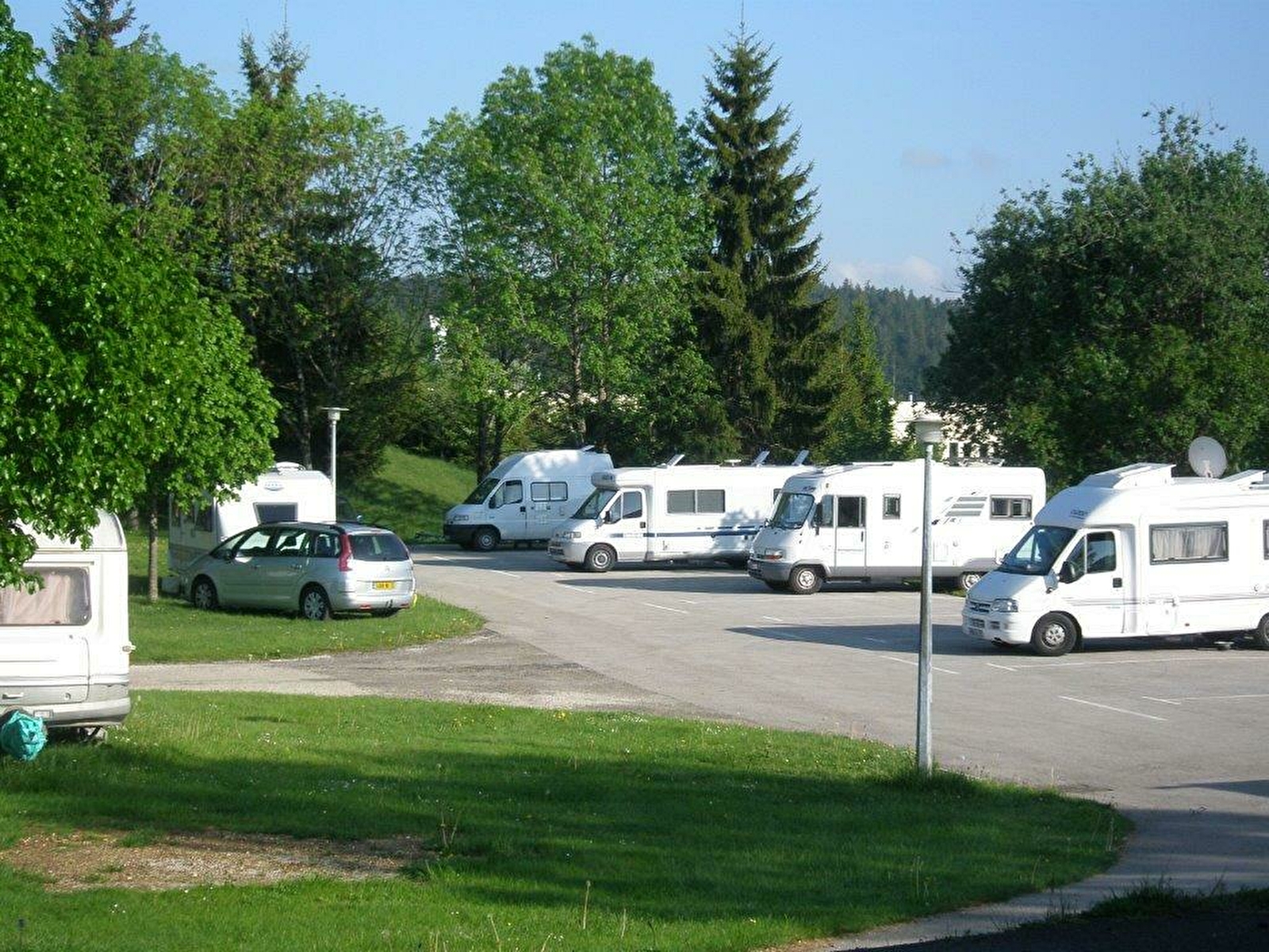 Aire de camping cars située au camping du "Champ de Mars" dans le bourg de Saint Laurent en Grandvaux.
