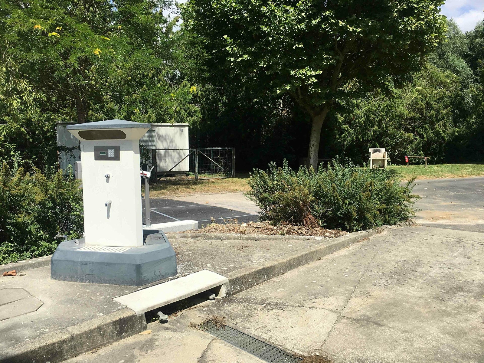 25 emplacements vous accueillent à l'abri des arbres, avec électricité (gratuit), eau et possibilité d'effectuer la vidange de votre véhicule.