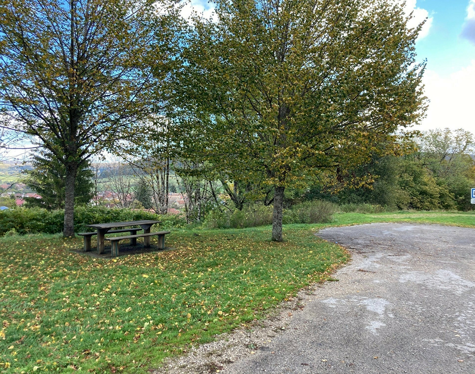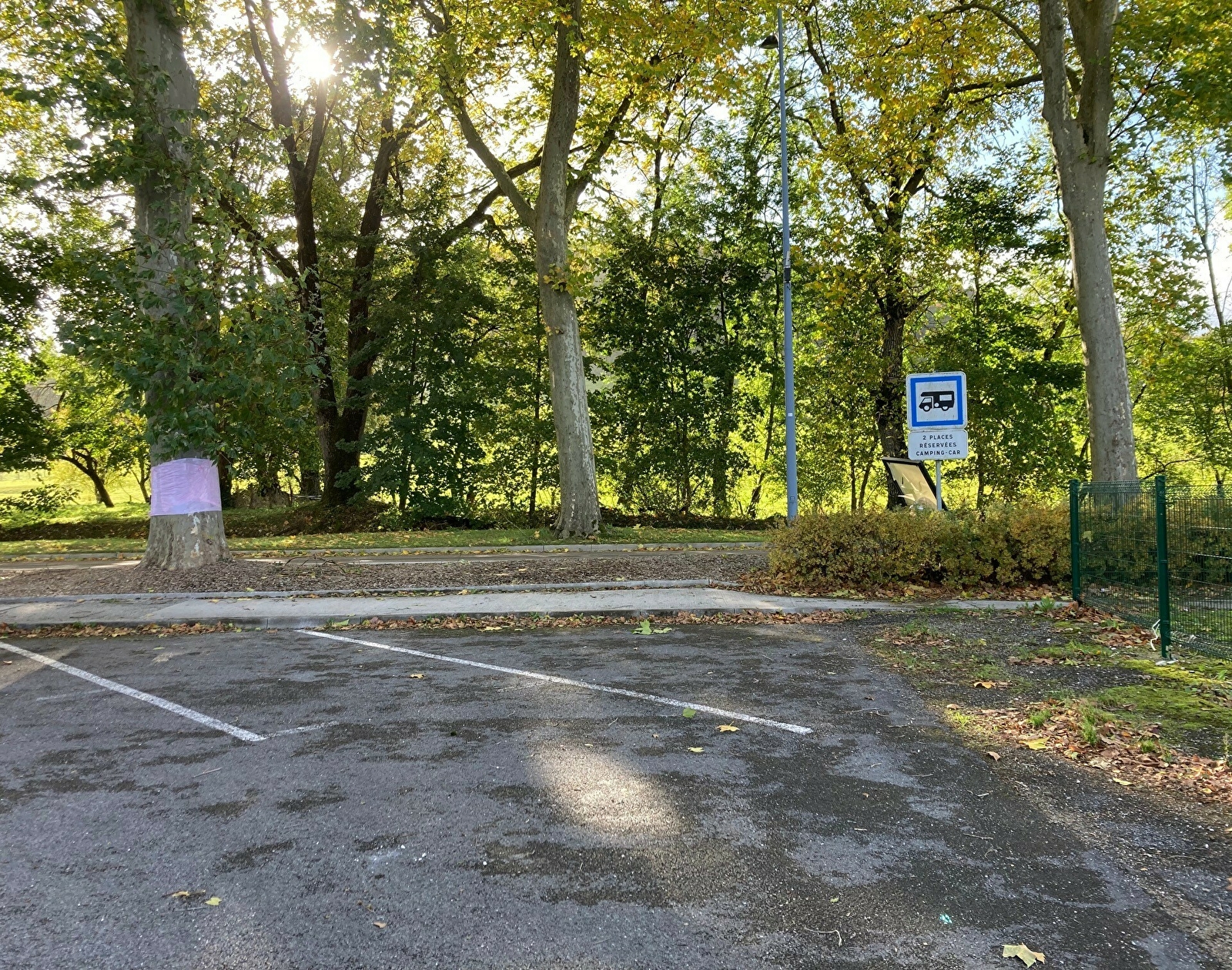Aires d'accueil (parking Maximarché) et de stationnement (sortie de village).