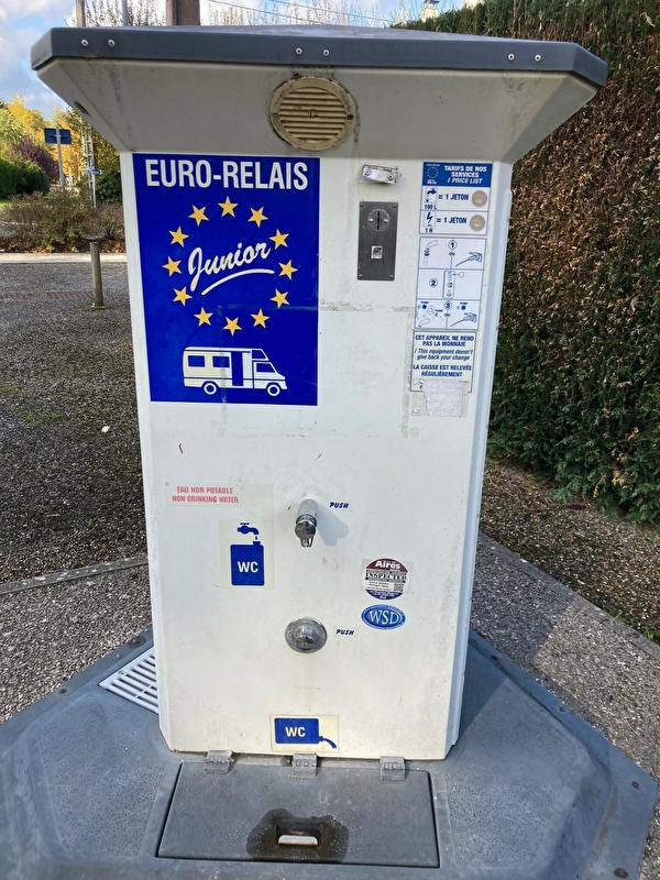 Type de borne : industrielle (Euro Relais), jetons disponibles aux supérettes Maximarché , Coccinelle et Café de La Poste.