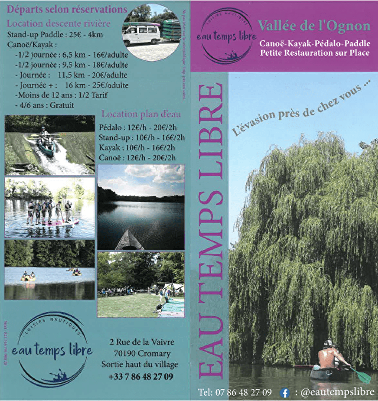 Après plusieurs années d'expérience en Ardèche, Thomas, Brevet d’État Canoë Kayak et disciplines associées, revient sur sa terre natale, la Franche-Comté, pour ouvrir sa base nautique où il saura si bien vous accueillir et vous faire vivre de délicieux moments sur la rivière de l'Ognon (Kayak, Paddle, Pédalos, Canoë et Buvette sur place).