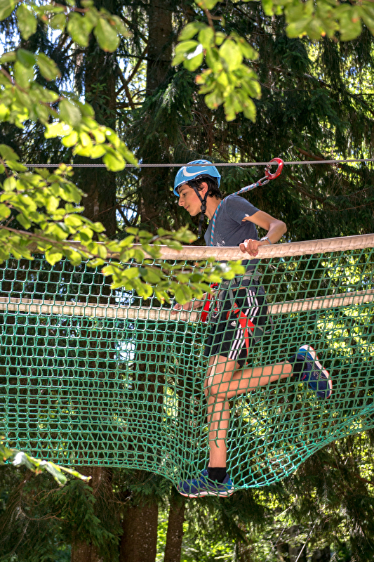 Parcours aventure : dans un cadre magique en lisière de forêt... Frissons et sensations assurés. 35 ateliers, 3 parcours (échelle de corsaire, saut de tarzan, tyroliennes, pont népalais, pont de poutres verticales, filet de descente, saut pendulaire...). Parcours accessible aux enfants. Taille minimum 1m35.Sur réservation. Ouvert tous les après-midis de 14h à 18h en juillet - août (Dernier départ à 16h). Parcours situé à 500m du Chalet de la Haute Joux, accessible à pied.
