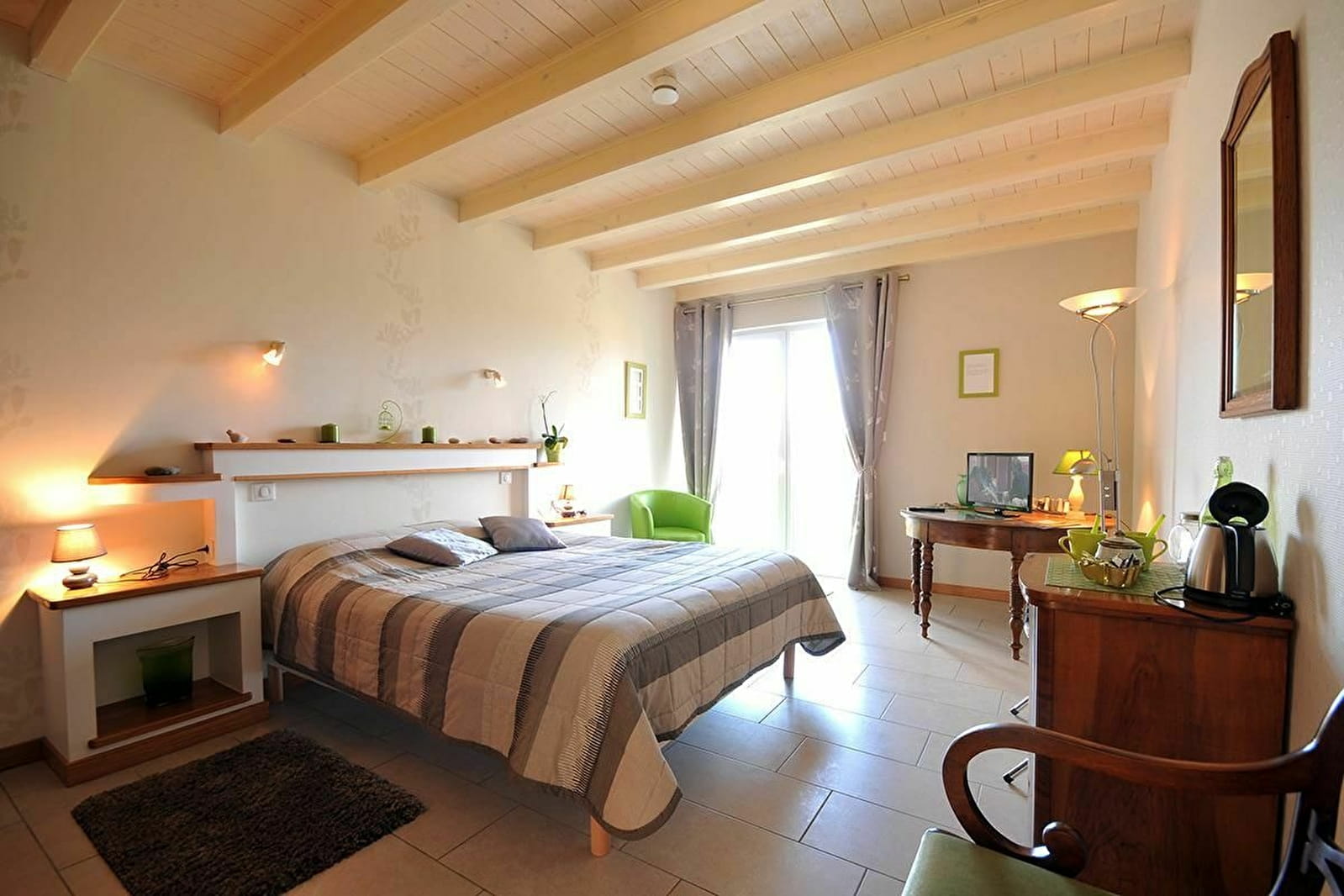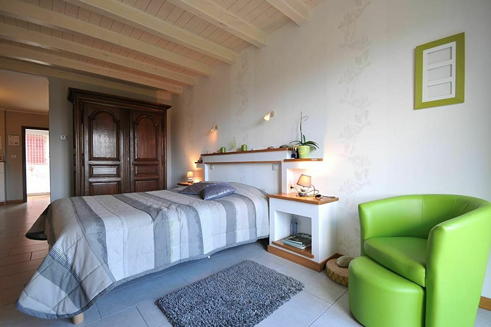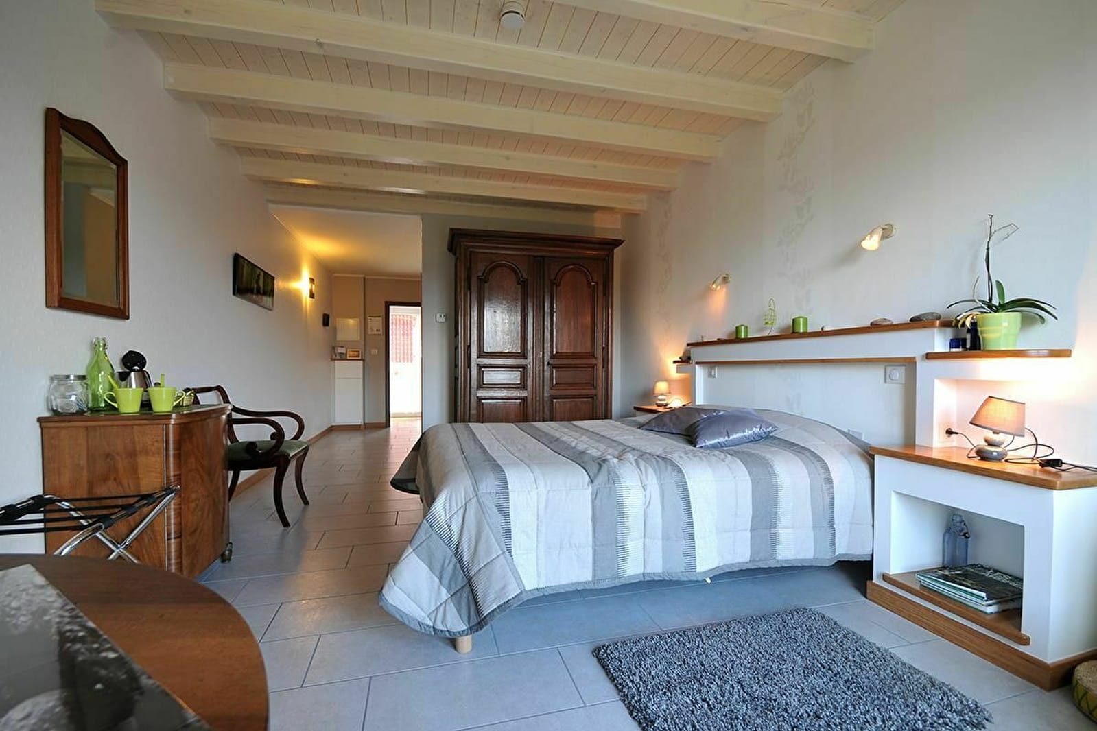 Ancienne grange rénovée en 2012 avec tout le confort moderne. Vous y découvrirez 3 chambres d'hôtes et un gîte situés au 1er étage. Chacune des chambres est équipée d'un lit double de 160x200, TV écran plat, un balcon, une salle d'eau attenante et privative et un wc séparé. Le rez-de-chaussée est réservé à l'espace de vie commun: salon de lecture et de détente, salle à manger où sera servi le petit déjeuner. Possibilité de tables d'hôtes sur demande. Accès direct à la terrasse et à la piscine.