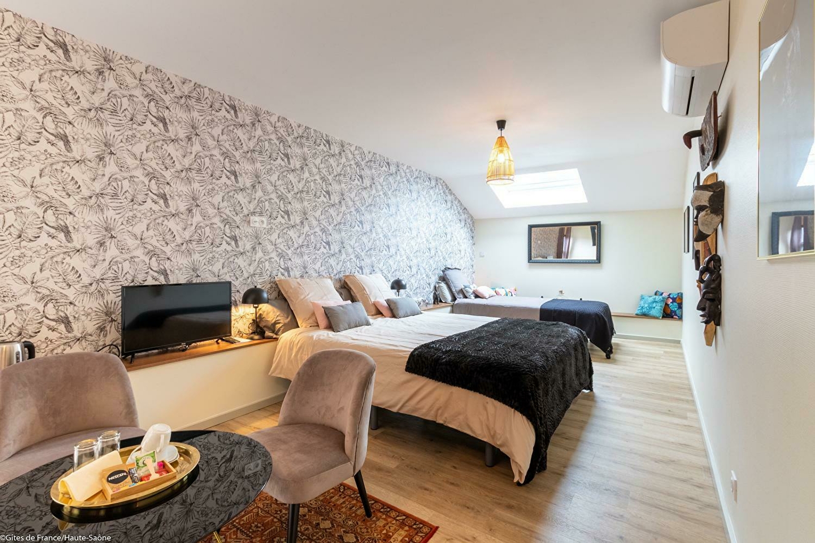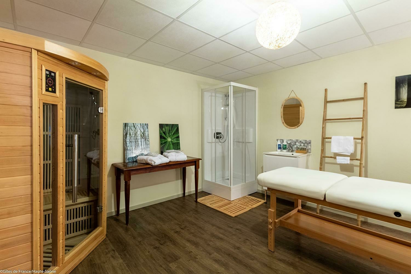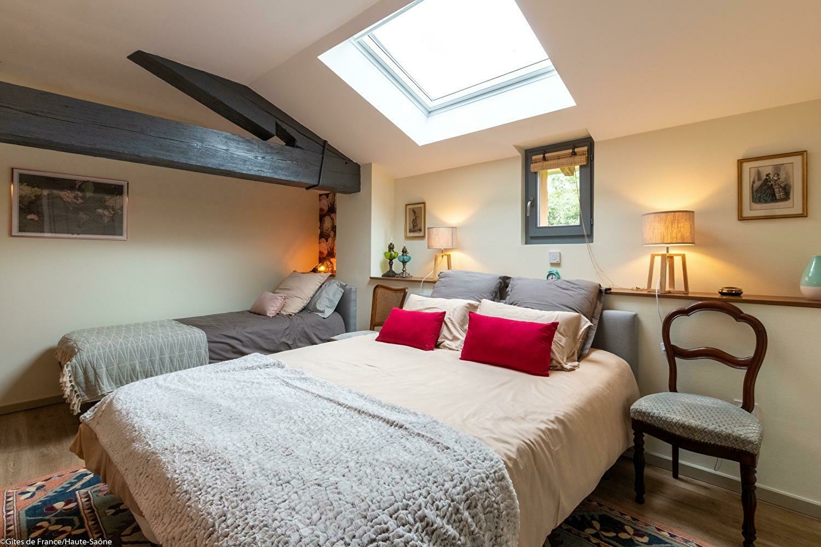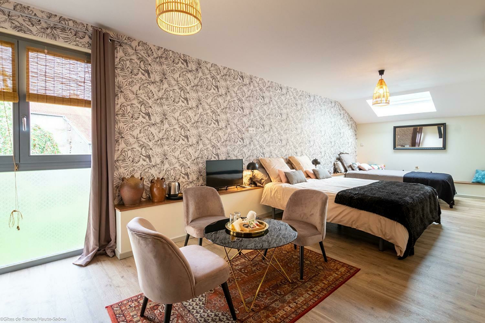 La maison d'hôtes Angèle et Auguste vous offre un cadre de vacances idéal pour vous ressourcer. Tout est soigneusement pensé pour un séjour aux petits soins. Cette magnifique maison de maître vous séduira par son charme et son caractère. Vous pourrez profiter du vaste jardin et de la douceur du cours d'eau qui berce la longère, où un coin "pêche" est aménagé spécialement pour les petits pêcheurs en herbe! Quand le soleil estival est présent, plongez dans l'eau turquoise de la piscine...et installez vous sous le pommier pour une lecture bucolique... Bienvenue, respirez la douceur de vivre, vous êtes chez "Angèle & Auguste"... Envie de vivre un week-end romantique, prolongez ces instants, avec l'espace bien-être : sur place, un sauna (infrarouge), possibilité de massages (sur réservation et avec supplément), un coin tisanerie et bibliothèque. La table d'hôtes est servie au rez-de-chaussée. Une salle de réunion de 20 personnes est disponible (sur réservation), pour les séminaires, exposition, stage... (paper board, vidéo projecteur, wifi). À l'étage, 5 chambres spacieuses à la décoration "campagne chic", avec pour chacune salle d'eau, wc indépendant et privatif, un espace bureau, bouilloire, cafetière, internet Wifi, sèche-cheveux. Peignoirs à disposition pour l’espace bien-être. Local vélo et moto. Table d'hôtes 28 €/personne, sur réservation. Possibilité de réserver les chambres Vannon et Vingeanne pour former la Suite V pour 170euros pour 4 personnes et 185 euros pour 5 personnes.