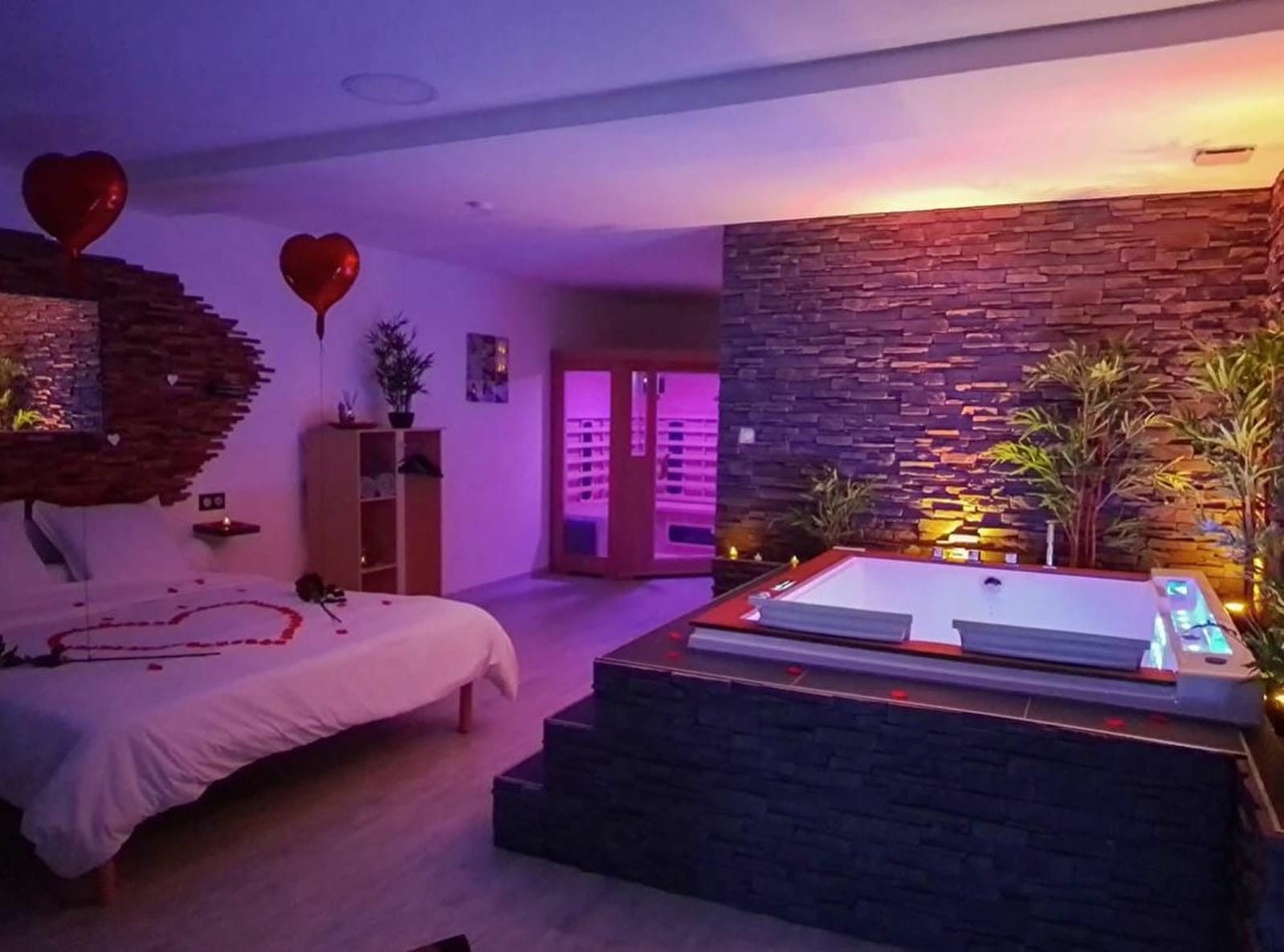 Profitez d'une soirée de détente entre amoureux dans notre suite romantique, entièrement meublé, équipée d'une baignoire balnéo (type jacuzzi) et d'un sauna.