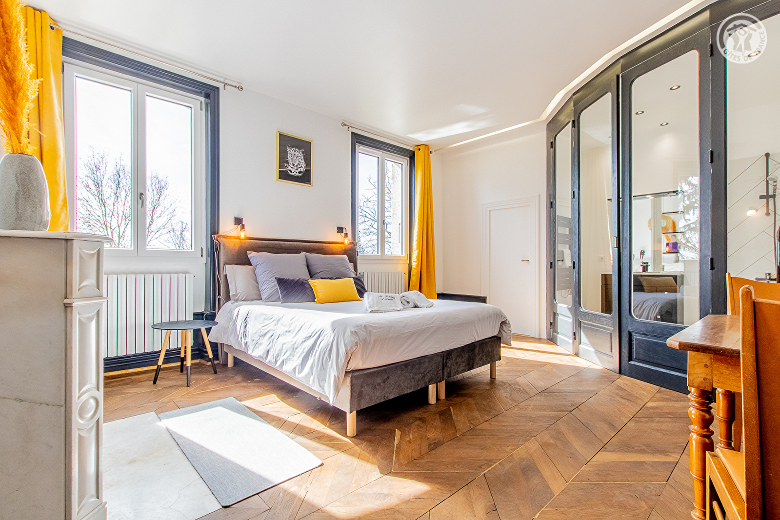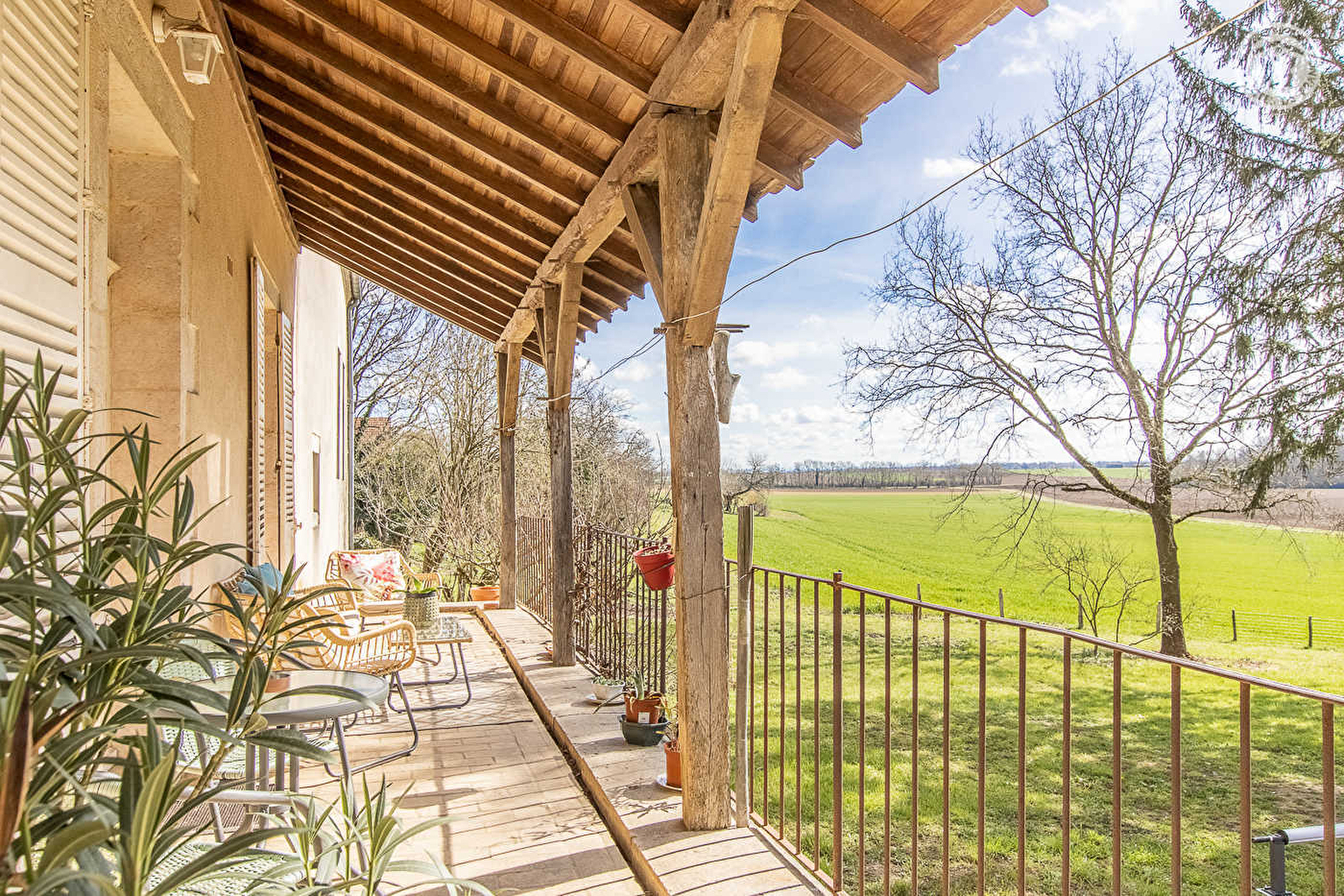Amélie vous accueille au sein d'une confortable demeure bourgeoise de caractère du début XIXe pétrie d'histoire (jadis école de fille & salle des fêtes) restaurée avec soins, sise au cœur d'un petit village bressan lové au creux de la verdoyante basse vallée du Doubs, à deux pas des rives du fleuve (paradis des kayakistes & pêcheurs), remarquable espace protégé en "Zone Natura 2000" (exceptionnelle réserve ornithologique riche de 160 espèces d'oiseaux & de variétés végétales très rares). Apaisant cadre champêtre alentour, niché en lisière de prairie non loin de vastes forêts domaniales. Chambres de très bon confort. Spacieuses & lumineuses. Beaux volumes. Élégant cachet "bourgeois" aux accents contemporains, sublimé par l'âme des lieux (tomettes, boiseries, poutres, manteau de cheminée en marbre, portes, moulures, parquets… d'origine). Beaucoup de charme. Ambiance cossue & cosy. Large balcon-terrasse abrité, dominant un jardin naturel arboré de 5000m² "ouvert" sur la campagne environnante, doté d'une piscine hors-sol (6x3m) & d'un mini verger fruitier, abritant dans l'esprit d'une "micro ferme" les moutons, chèvres & poules des propriétaires (parqués).