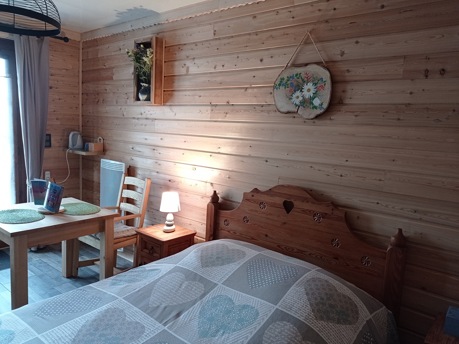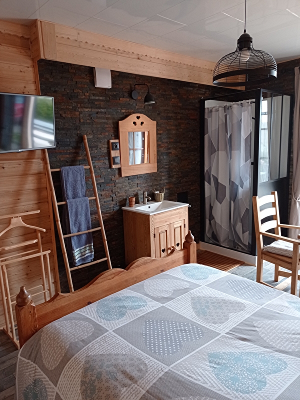 - La chambre Savoyarde, dans une ambiance boisée, dispose d’un lit double et d’une salle de douche privative.