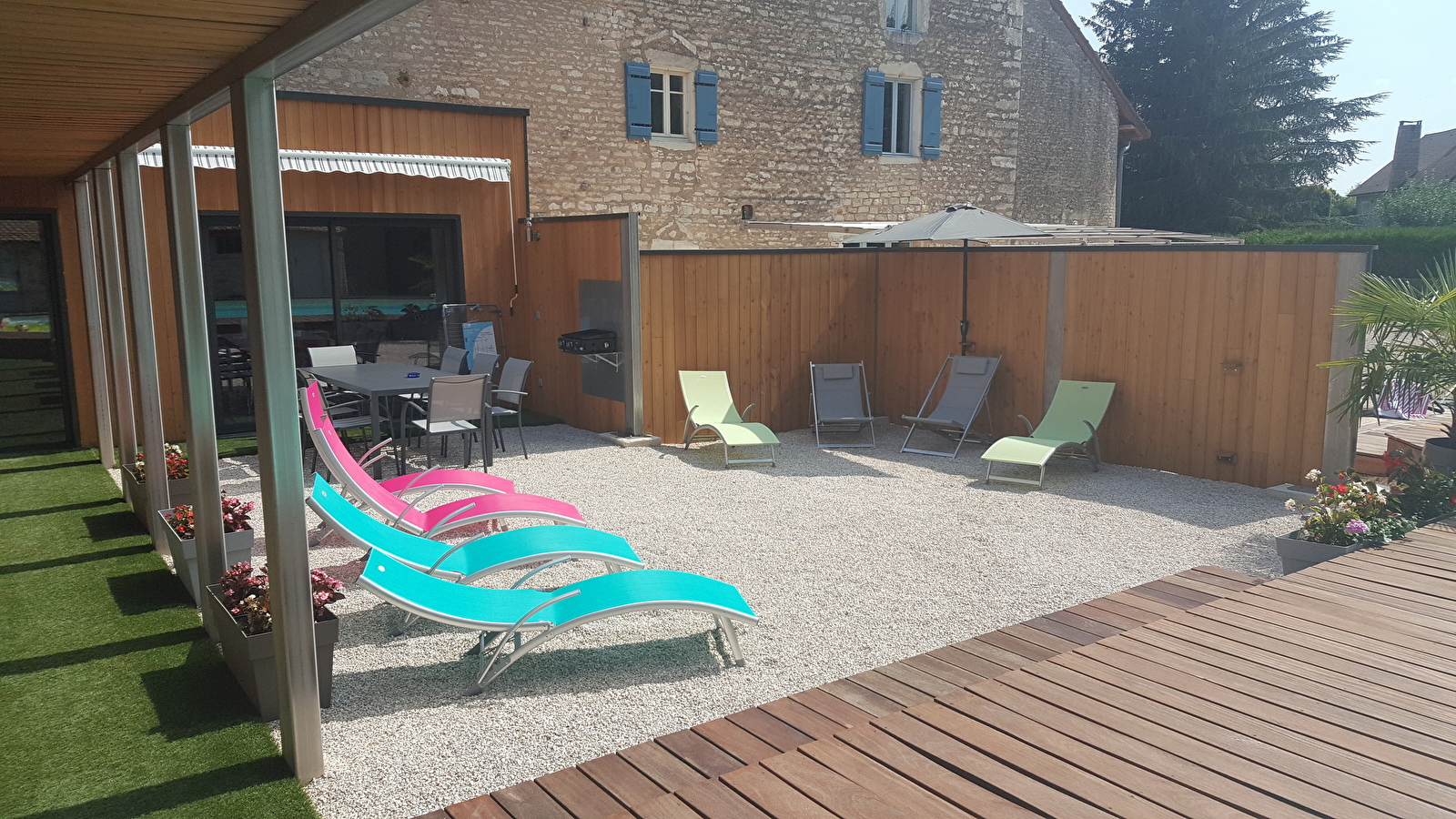 Chambres d'hôtes tout confort au cœur de Givry. Piscine, patio privatif avec transats, parking, climatisation, WIFI.