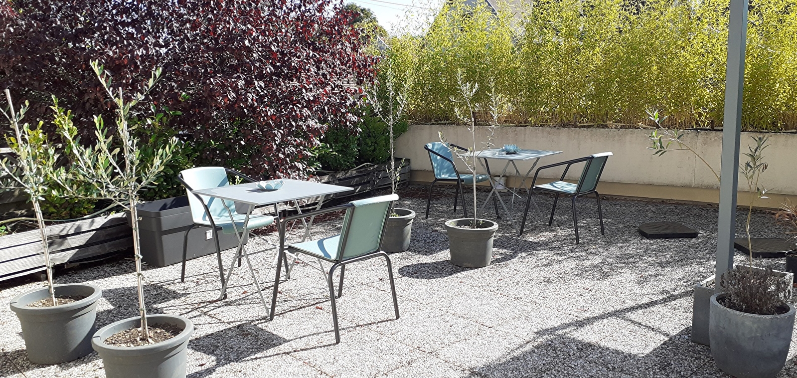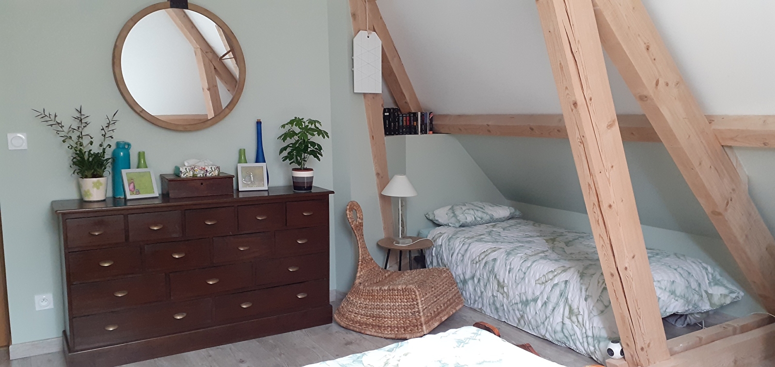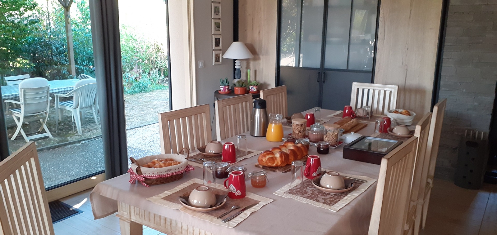 Bienvenue chez nous. Nous vous accueillons en personne dans notre maison de construction traditionnelle bourguignonne située en plein cœur de la ville, à 5mn à pied des commerces, restaurants, cinéma et théâtre. C'est un quartier résidentiel calme. Vous aurez accès au parking couvert, à une terrasse aménagée d'un côté et au jardin avec balançoire et piscine de l'autre. 2 chambres sont pour l'instant disponibles. La chambre 1 au rez-de-chaussée pour 2 personnes et la chambre 2 à l'étage pour 3 personnes. Elles ont chacune une salle d'eau privative et les toilettes sont dans le couloir à chaque étage. Nous avons aménagé à l'étage un coin travail ou snack et un coin lecture. Le petit-déjeuner est servi en bas dans la salle à manger mais il est possible de déjeuner dehors en fonction de la météo. La brioche et les confitures sont faites maison. A bientôt.