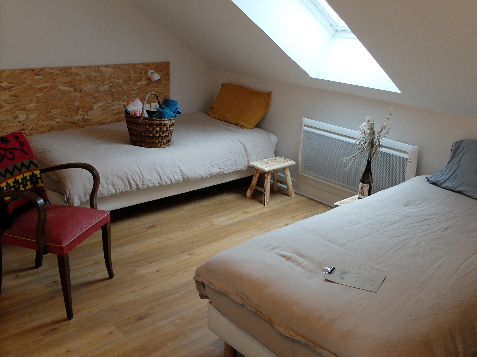 Nous disposons de deux chambres avec lit double (140x190) et une chambre avec deux lits jumeaux (90x190) pouvant être transformés en un grand lit double (180×190). Toutes les chambres sont équipées d'un coin lavabo et ont accès à une douche et des toilettes privatives adjacentes.