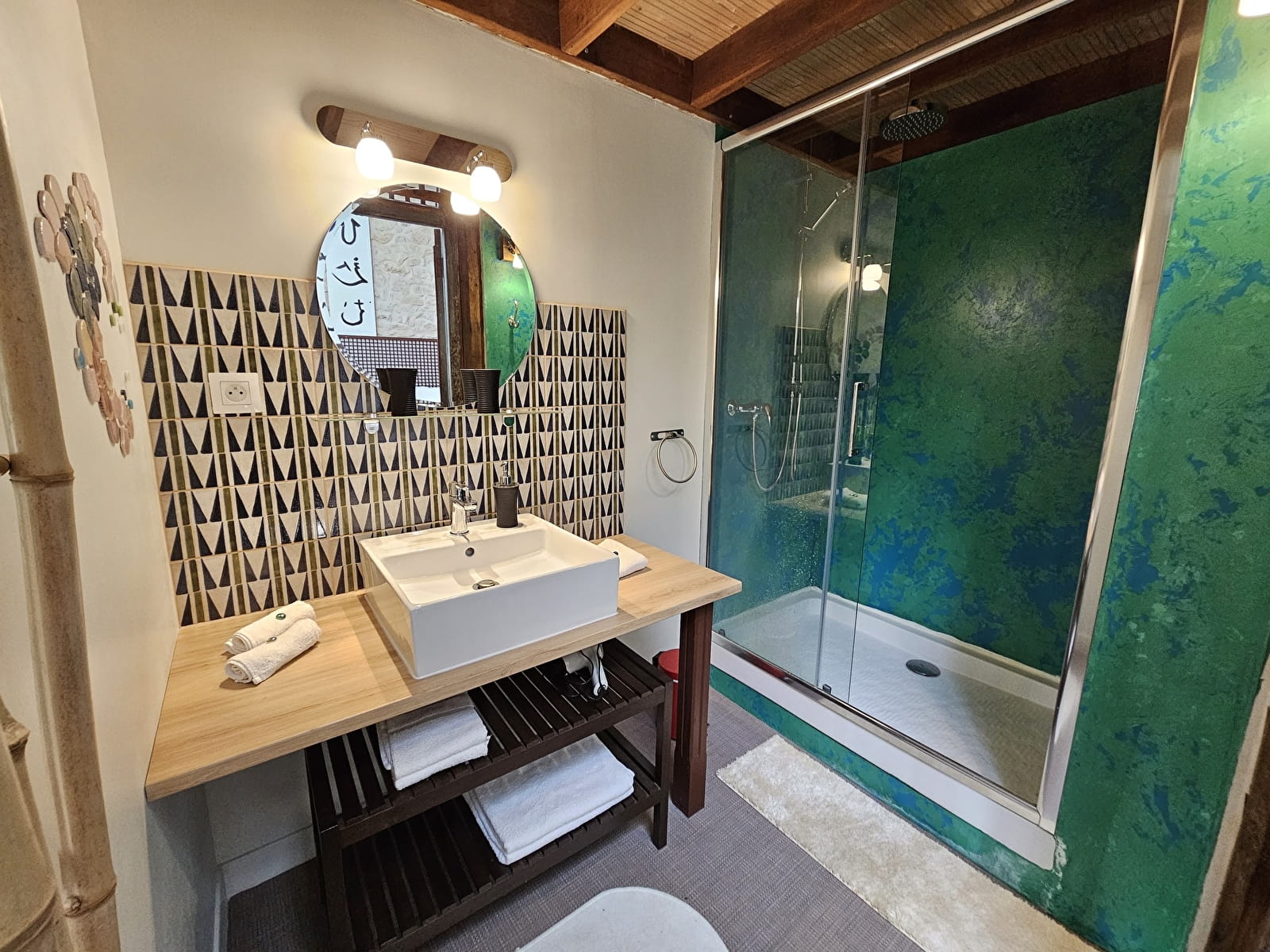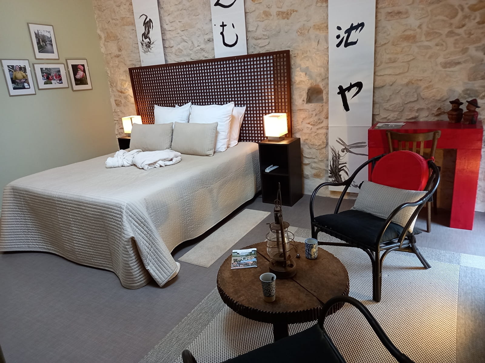 Maison de charme faite de pierre et de bois, décorée aux couleurs du monde. Les 3 chambres d'hôtes vous transportent au Japon, en Inde ou aux cœur des aurores boréales et permettent l'accueil de 10 personnes maximum. Chacune est dotée de toilettes séparées et d'une salle de douche privative. Pour permettre des séjours en famille ou entre amis, la chambre cabine, située à proximité des chambres Soleil Levant et Aurores Boréales, complète votre réservation et permet l'accueil de deux enfants en lits superposés.