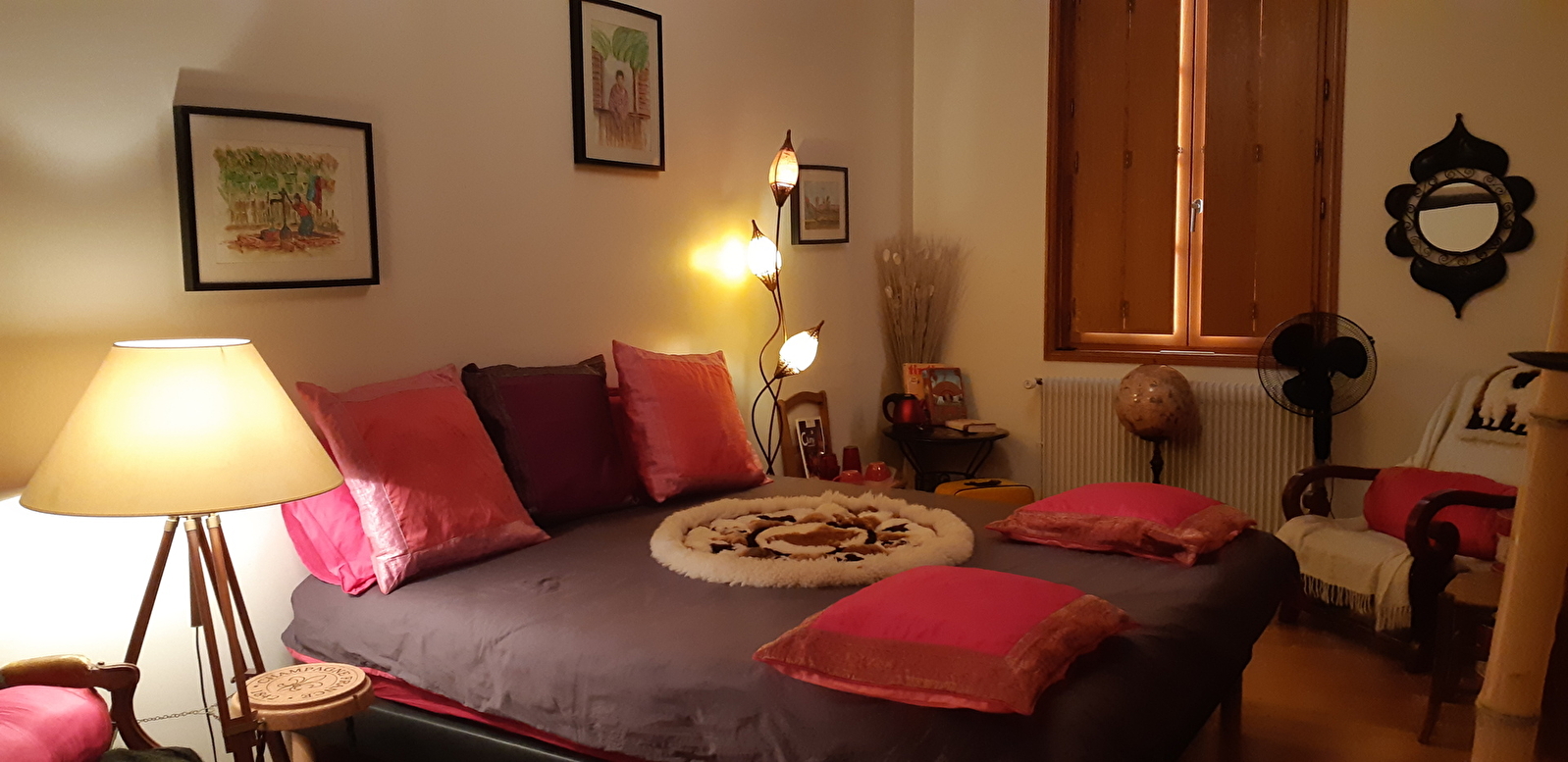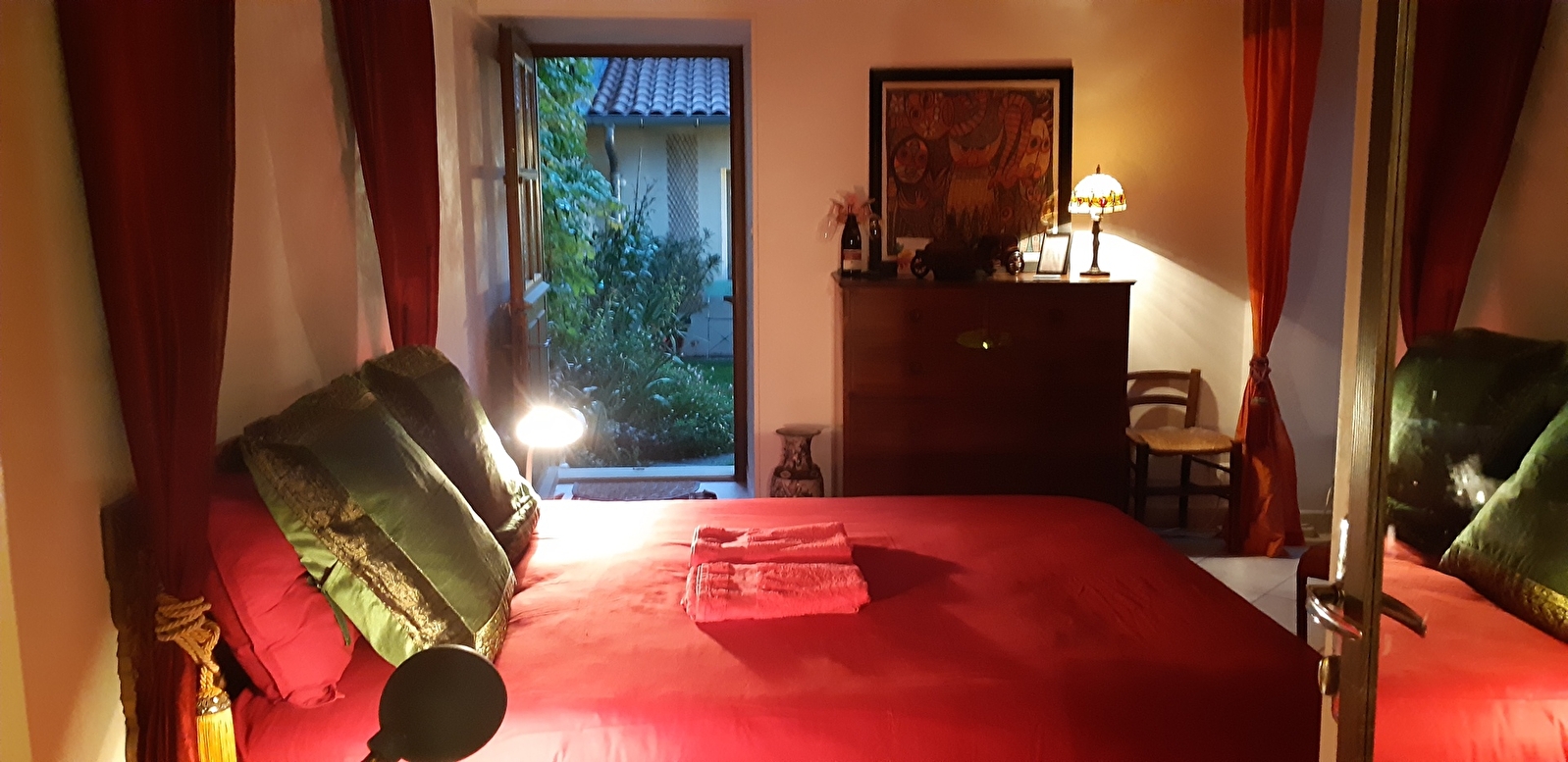 A deux pas de l'abbaye, en plein centre ville, ancienne chapelle des pénitents blancs rénovée, je propose deux chambres très cosy dont une indépendante dans le jardin et l'autre dans la maison, accès direct depuis le hall d'entrée/cuisine.