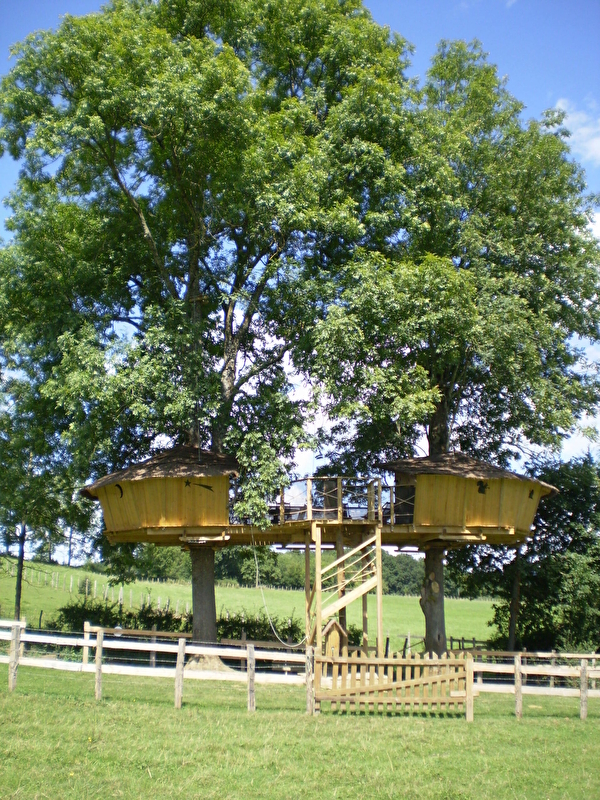 Envie de hauteur et de tranquillité ? de dormir dans les arbres à proximité des oiseaux et des écureuils ? alors rendez-vous à Vareilles… 2 cabanes perchées à 4 mètres de haut dans deux frênes, reliées par une grande terrasse avec une vue imprenable sur les prairies verdoyantes du Brionnais vous attendent. Les cabanes sont équipées de toilettes sèches, éclairage par bougies (l'électricité et l'eau étant absentes des cabanes). Sur la terrasse, vous trouverez tables et chaises. Vous hisserez les petits-déjeuners (compris dans la location) jusqu'à vous grâce à une poulie. Les enfants sont acceptés à partir de 4 ans.