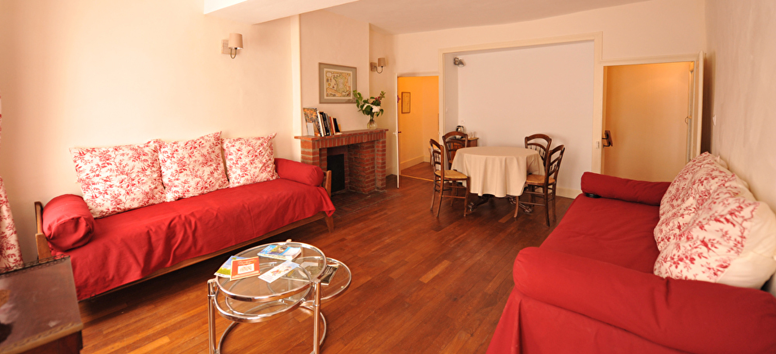 40 m2 composés de 2 pièces avec lit double (160x200) et 2 lits simples. wc et salle d'eau privatifs . Escalier indépendant.
