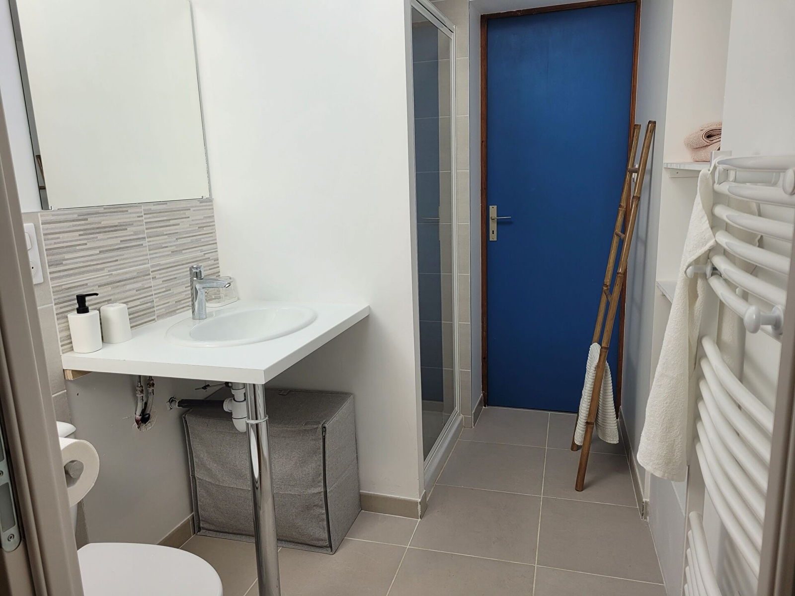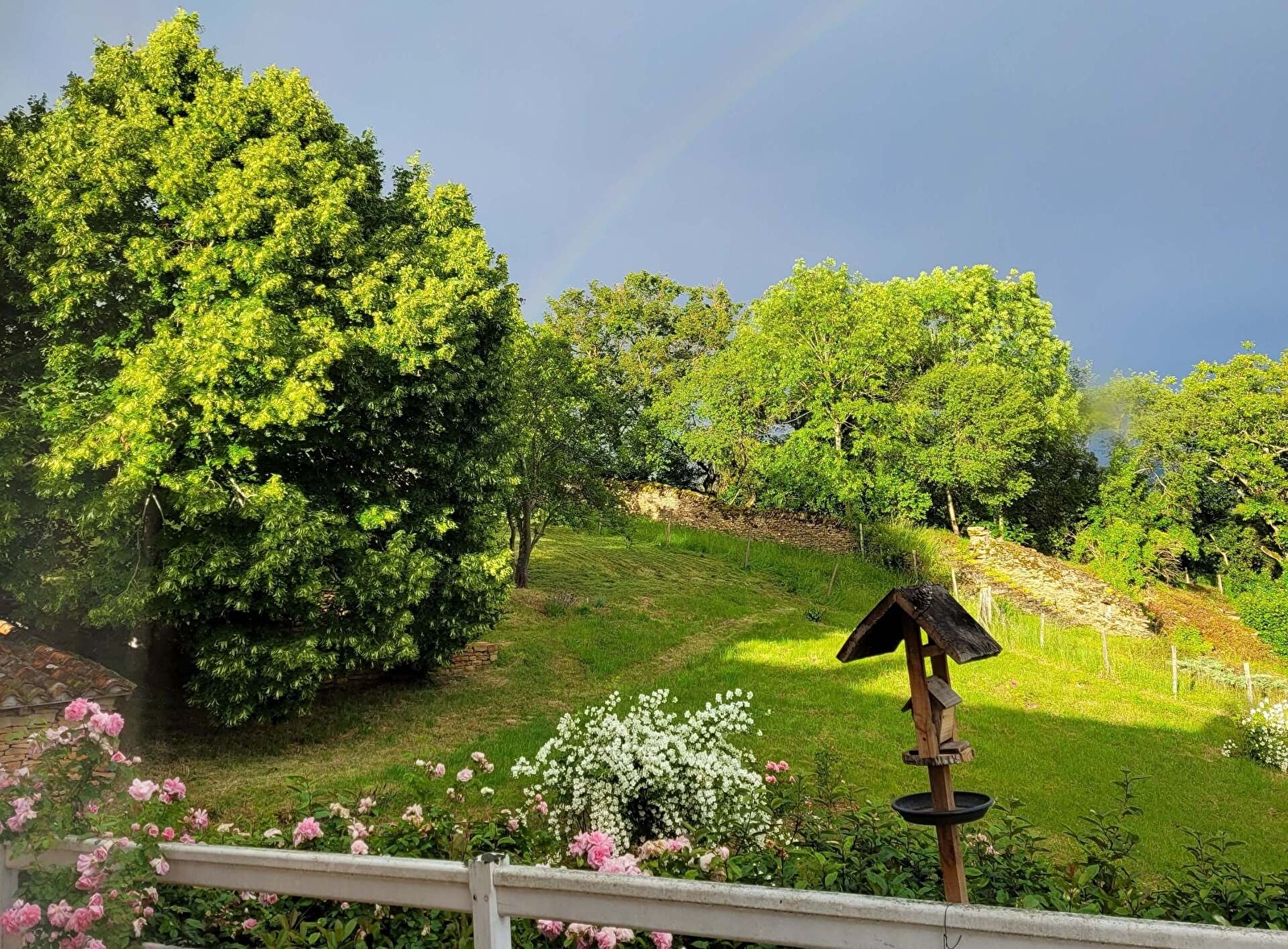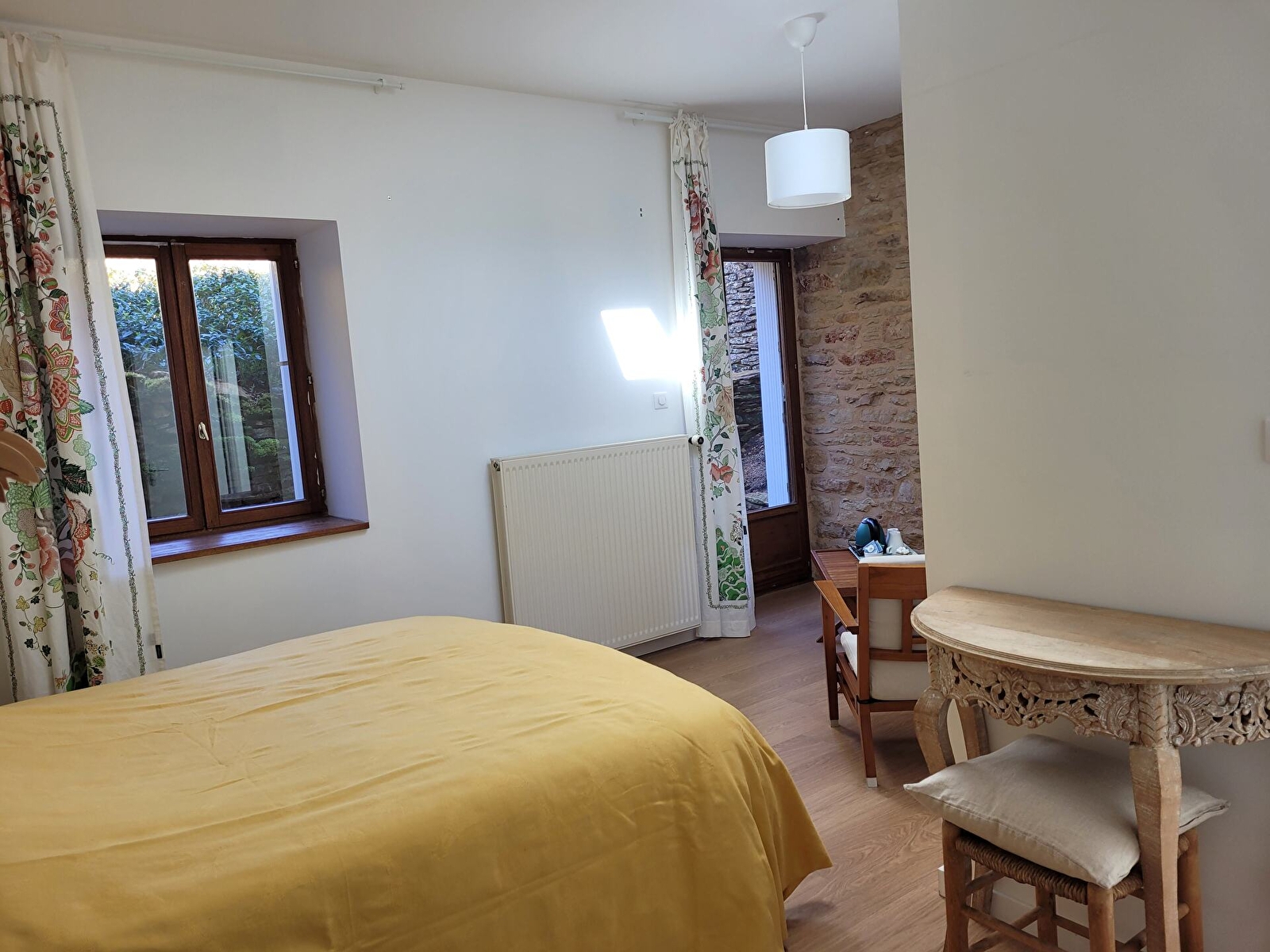 Chambre Mille-pertuis : lit 160, wc et sdd privatifs, 20m², accès particulier vers le jardin en hauteur, jolie vue sur le village et les collines.