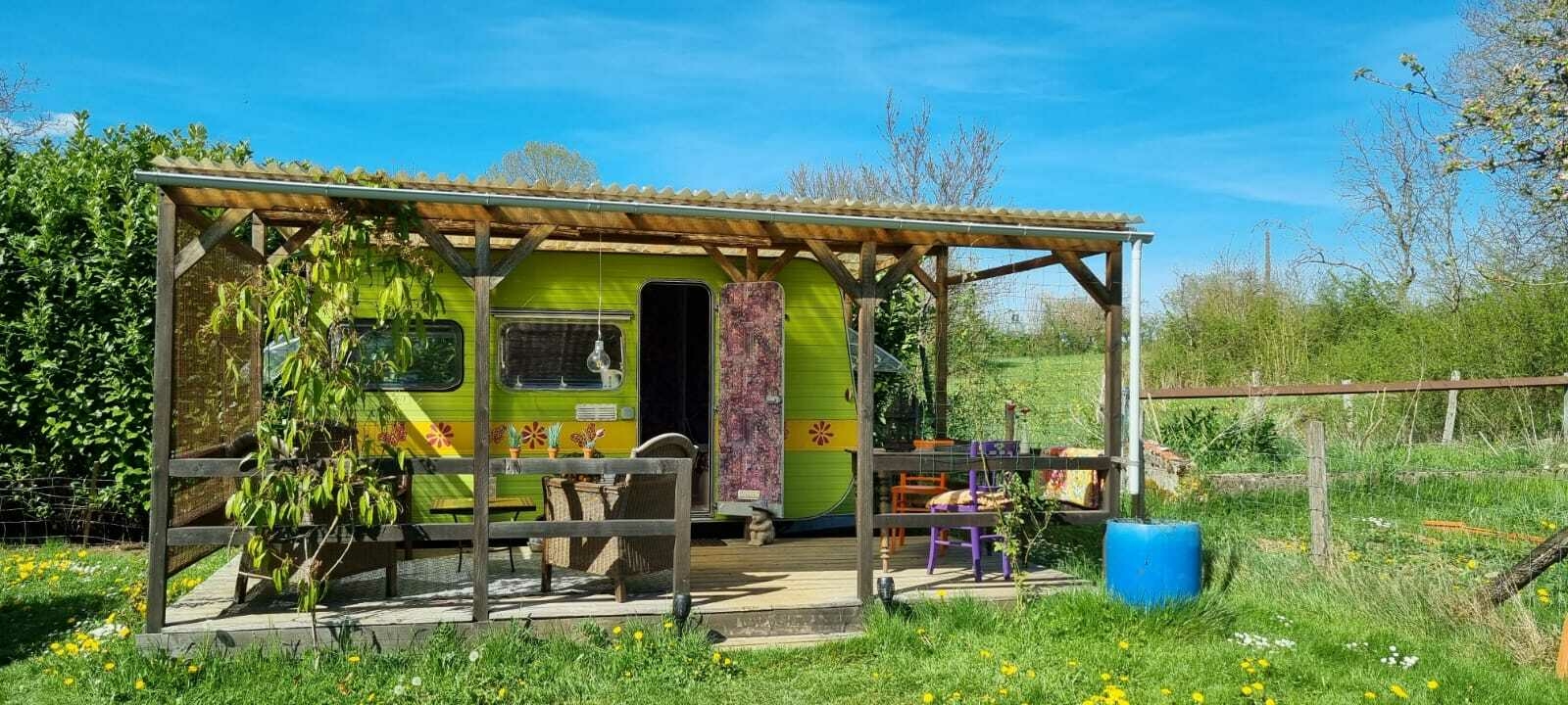 Votre sanitaire privé (douche, lavabo et wc) est à coté de la caravane.